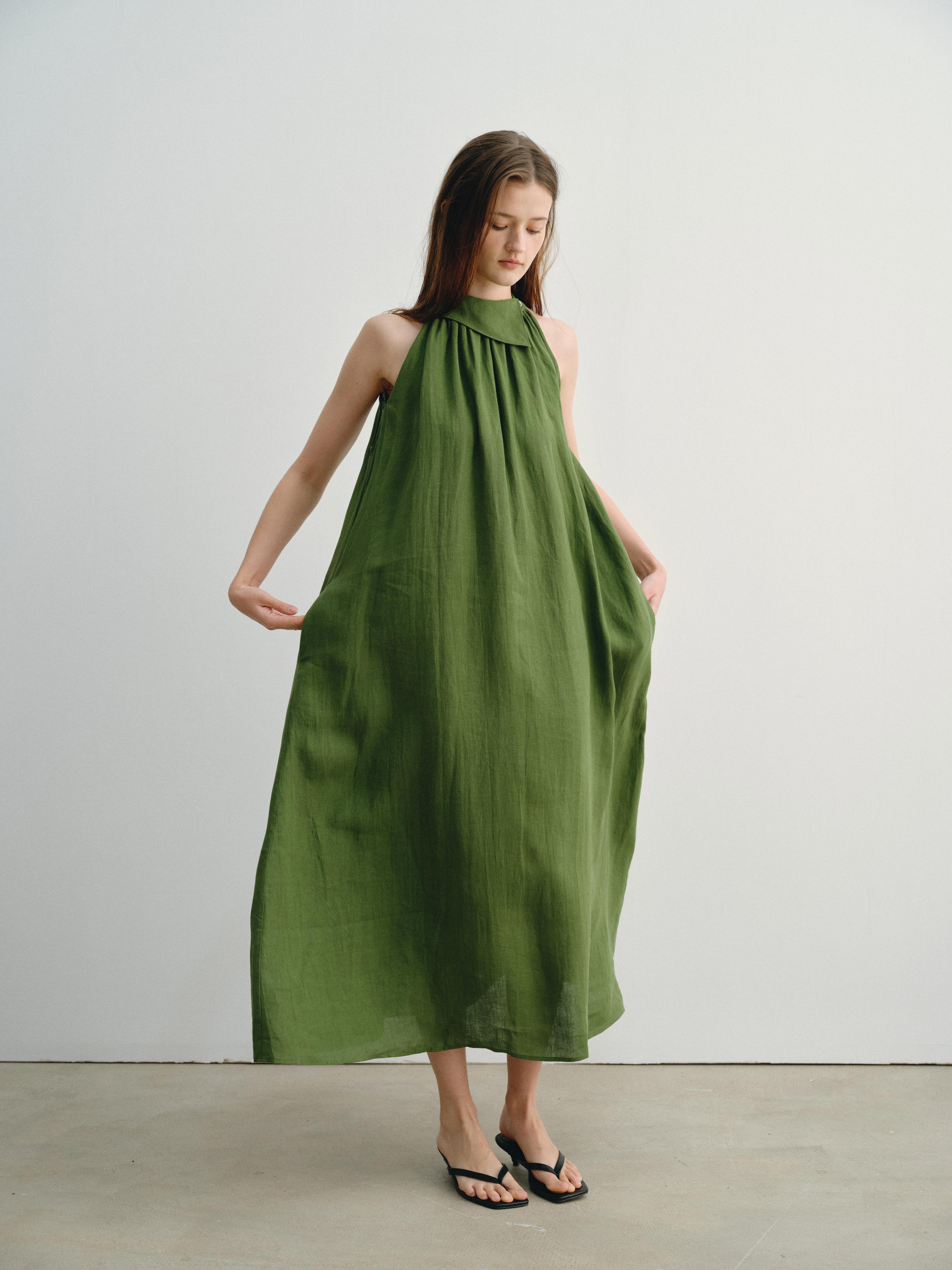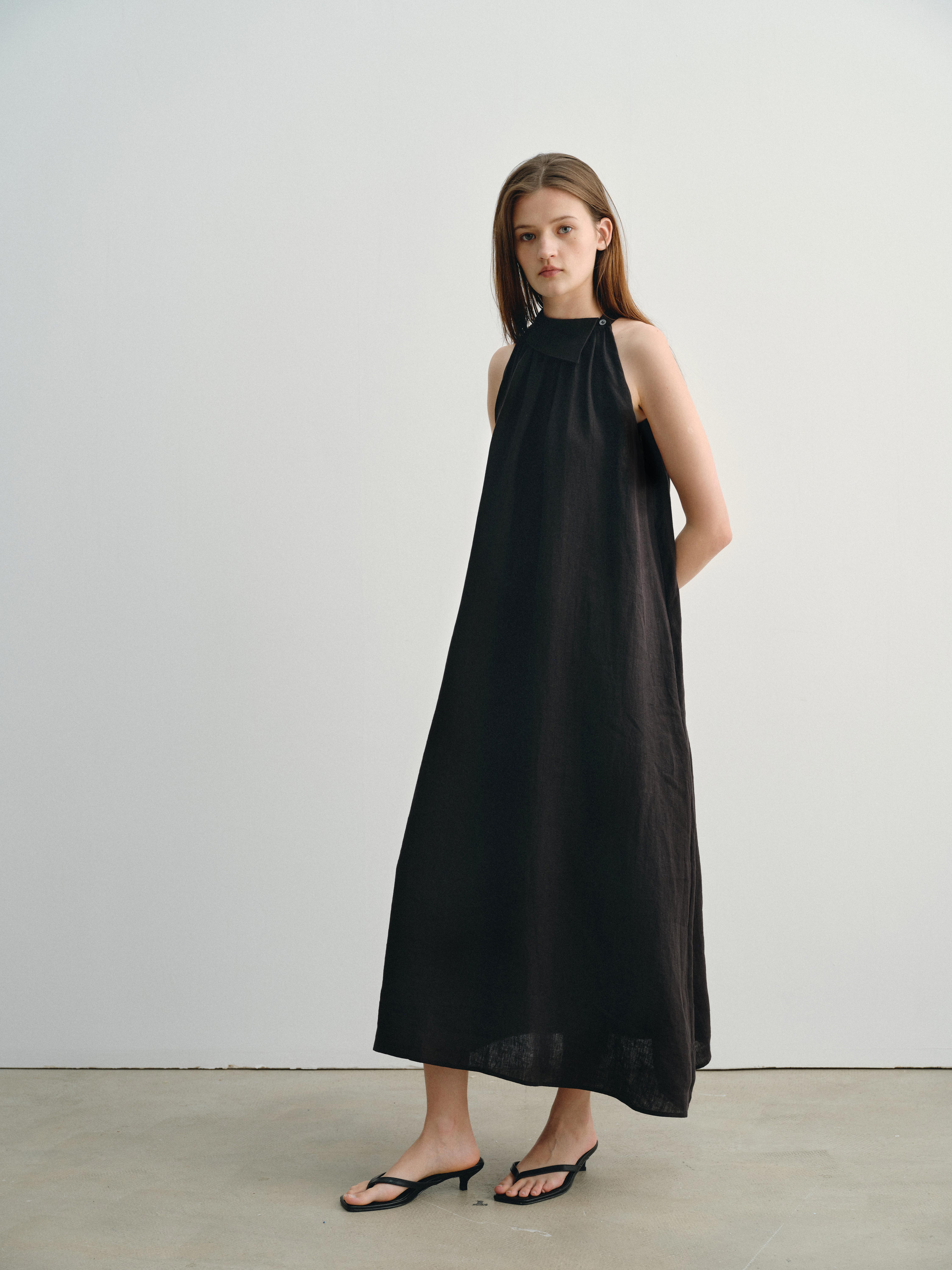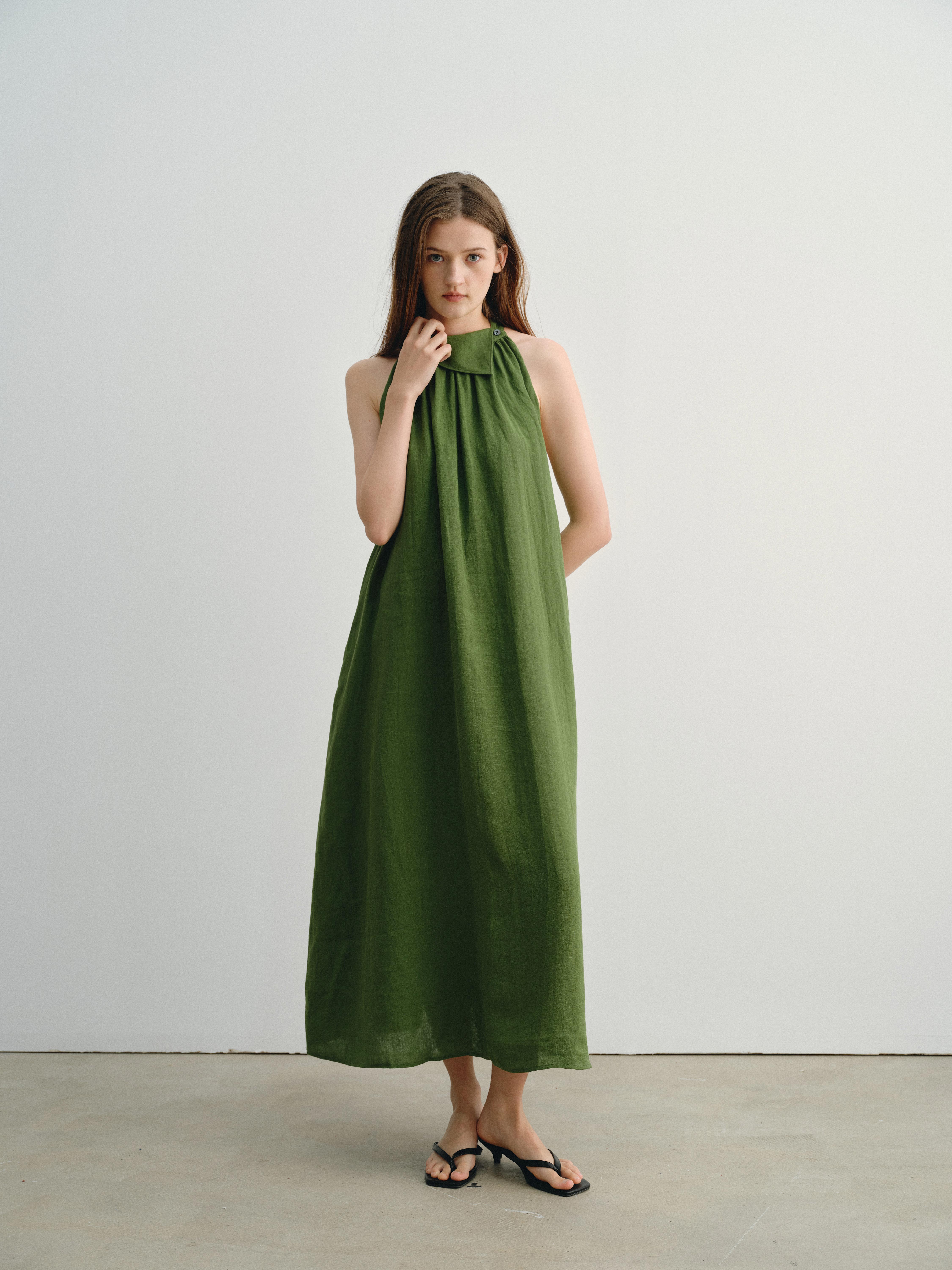 shyshystill/shy202404045/夏日高品质亚麻凉爽挂脖两色遮副乳长裙连衣裙
