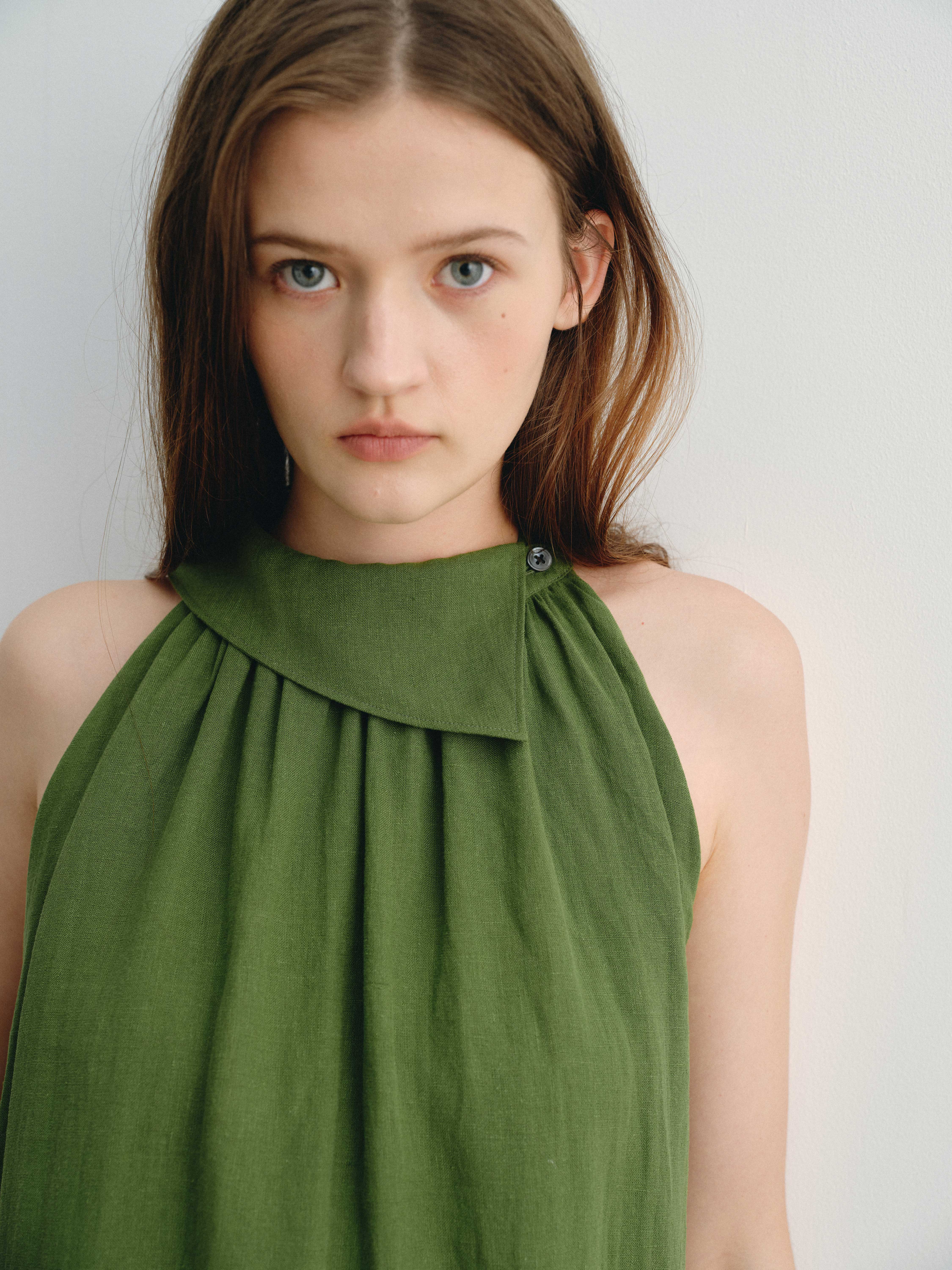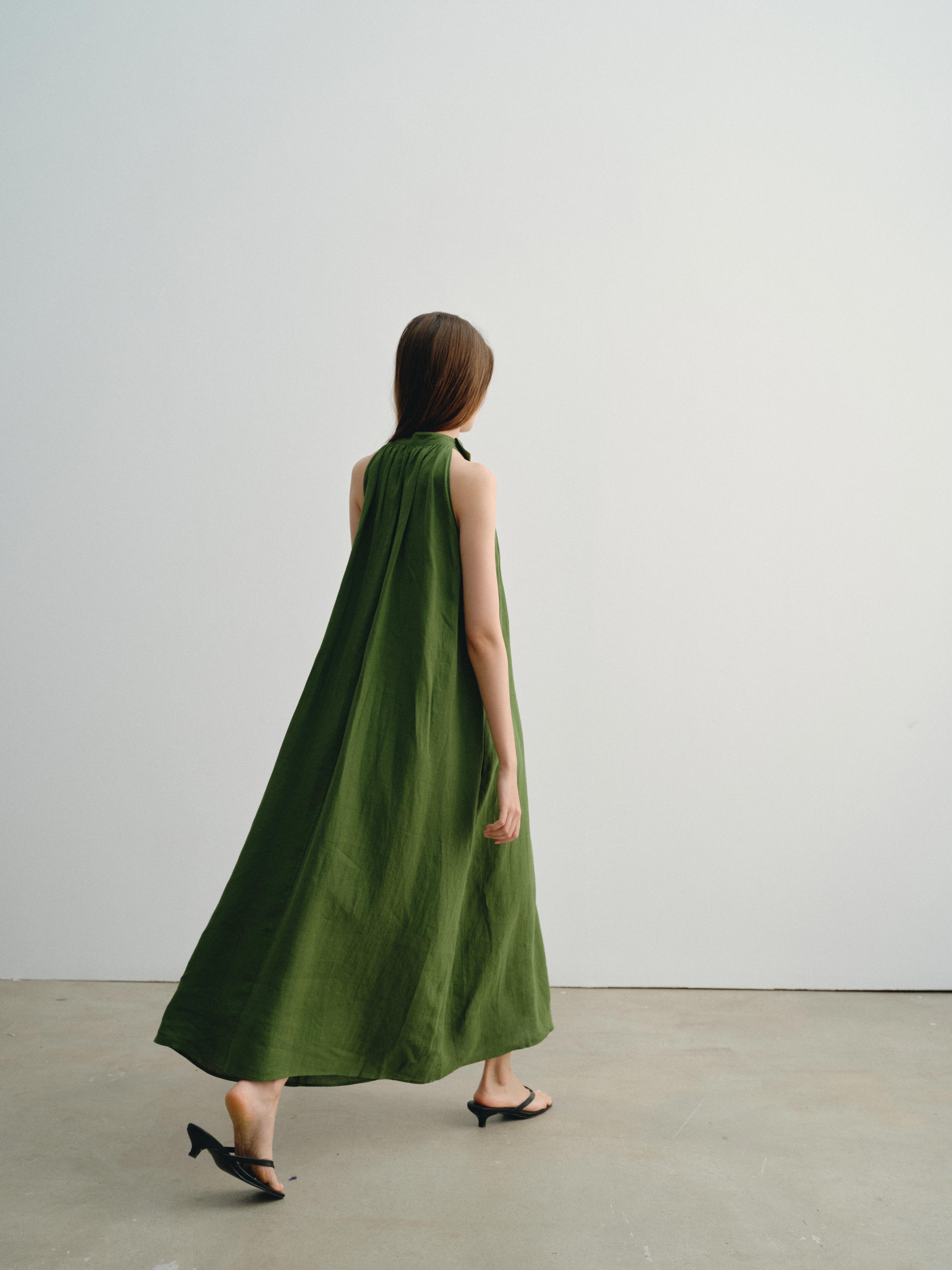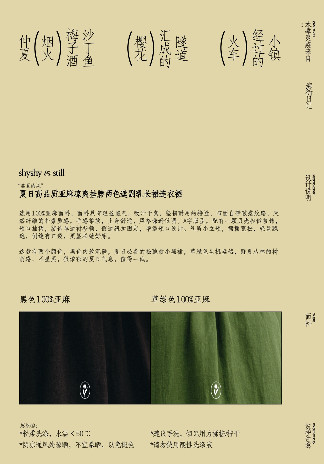 shyshystill/shy202404045/夏日高品质亚麻凉爽挂脖两色遮副乳长裙连衣裙