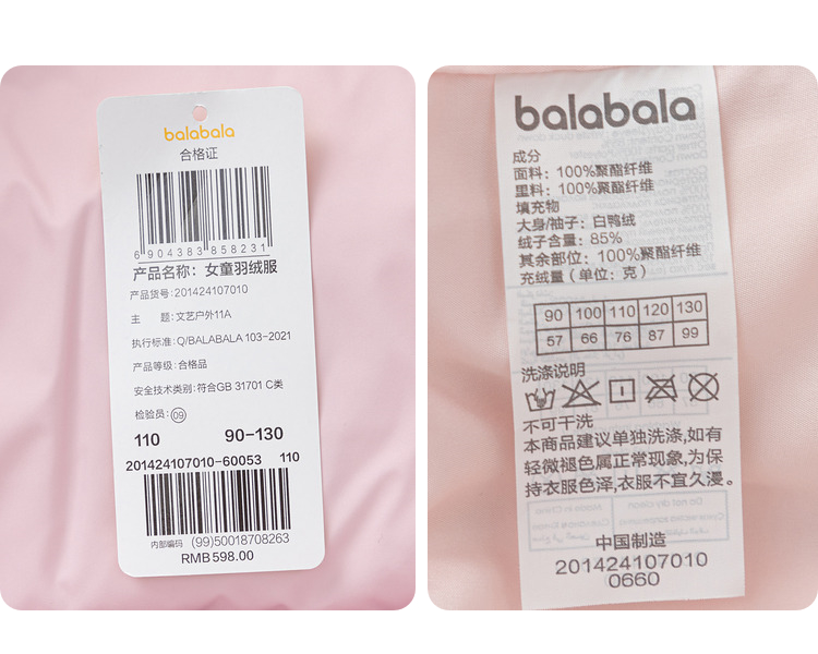 巴拉巴拉童装儿童羽绒服女童冬装连帽外套甜美户外上衣流行舒适潮★