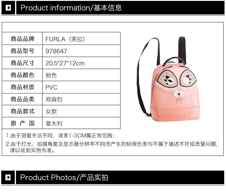 QH Furla 芙拉 女士粉色PVC双肩包 978647