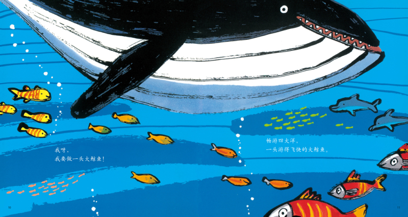蒲公英、蒲公英,长大以后做什么?小鱼,小鱼,长大以后做什么?《长大以后做什么》简单却富有意蕴,用童谣般活泼流畅的语言、彩虹般丰富绚丽的色彩,把孩子心中五彩缤纷的世界呈现在大家眼前,让孩子自由发挥想象力,大声喊出自己不平凡的心愿。