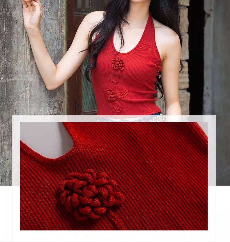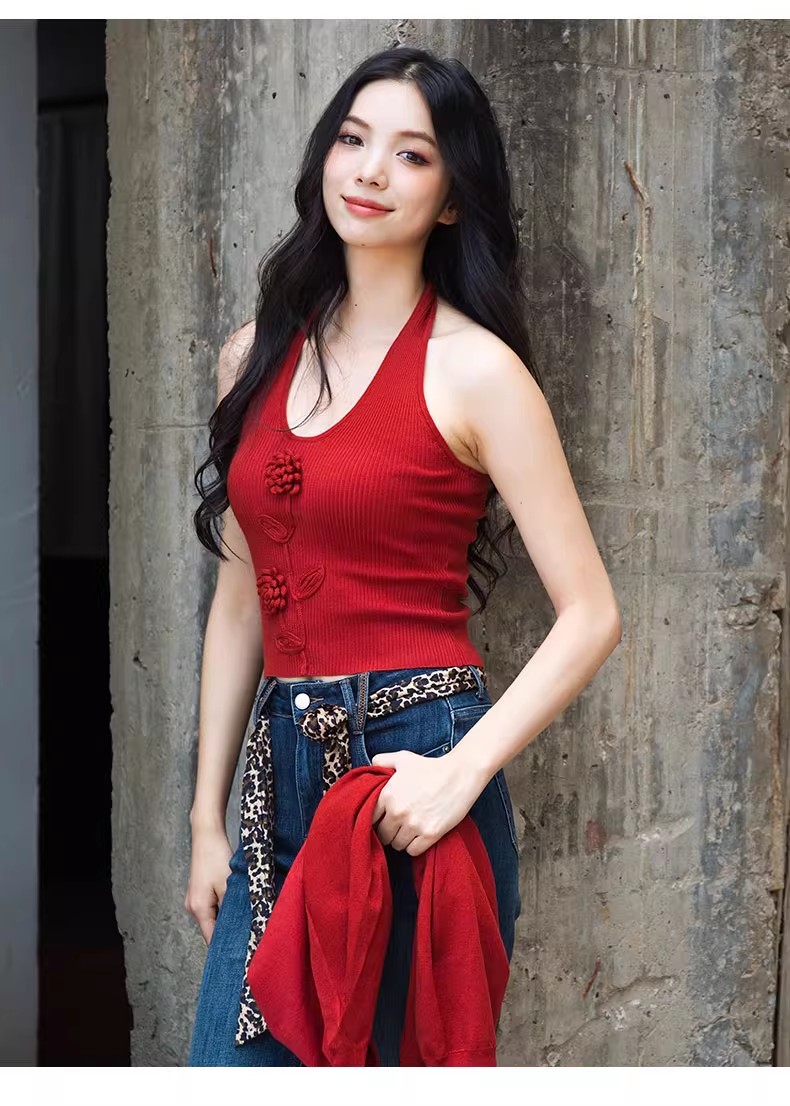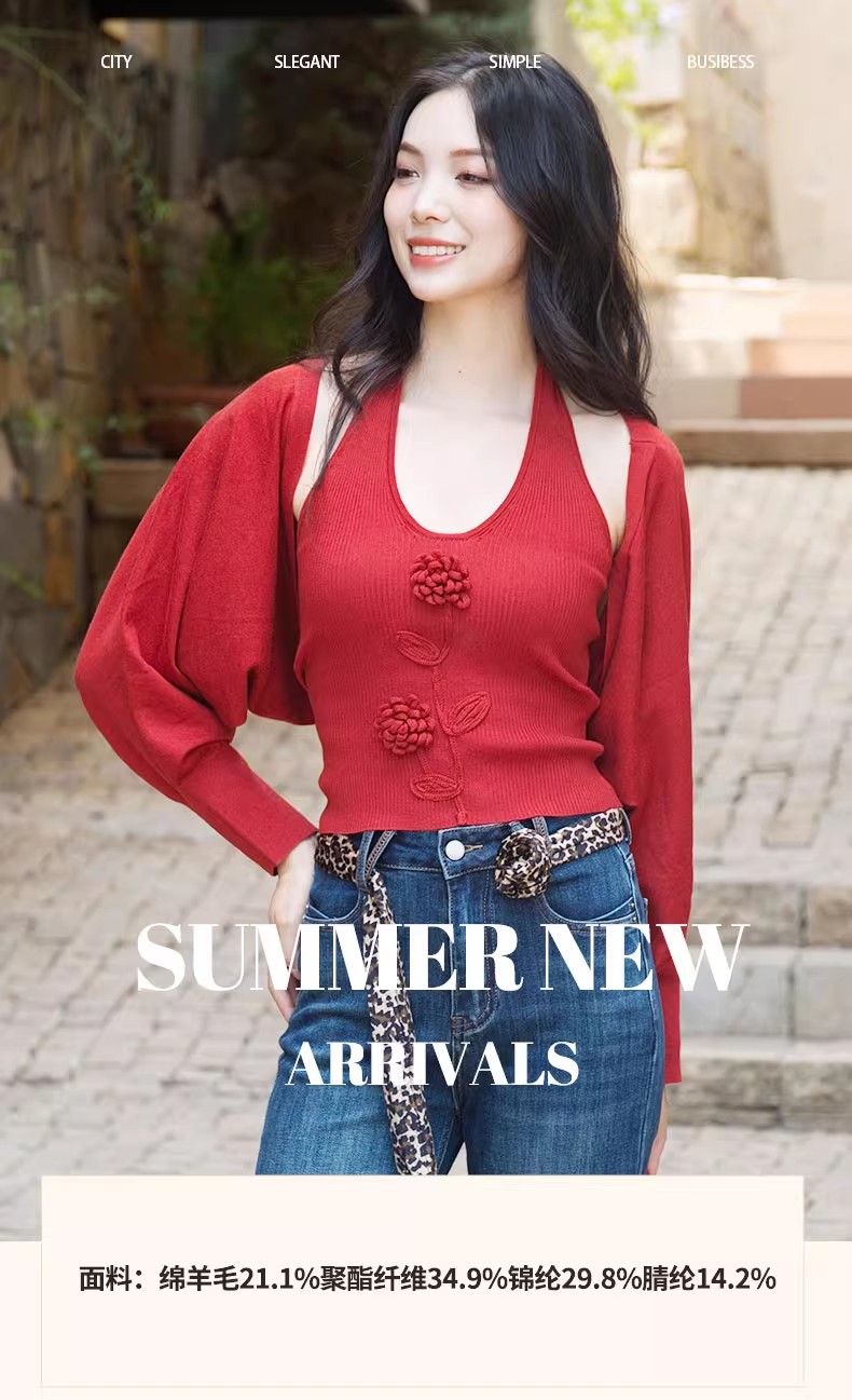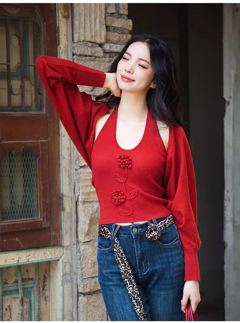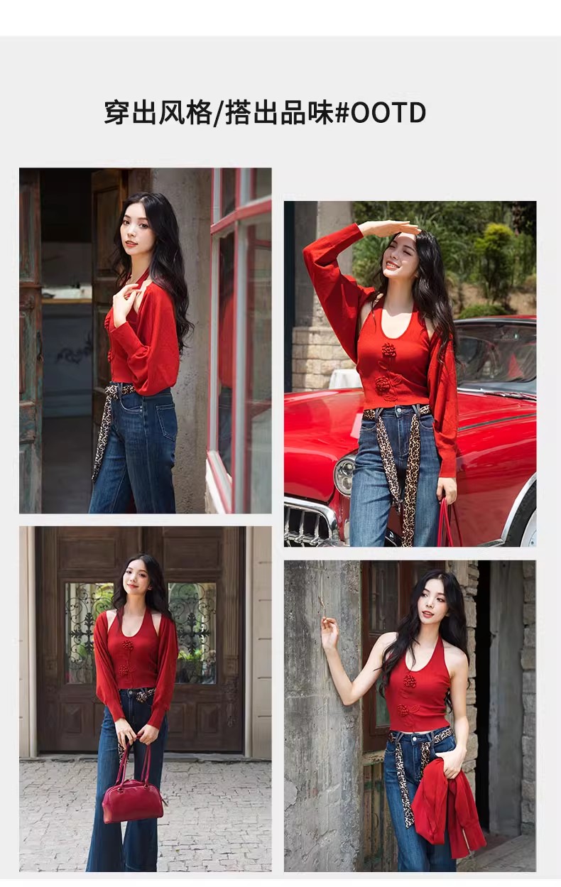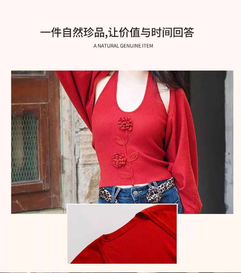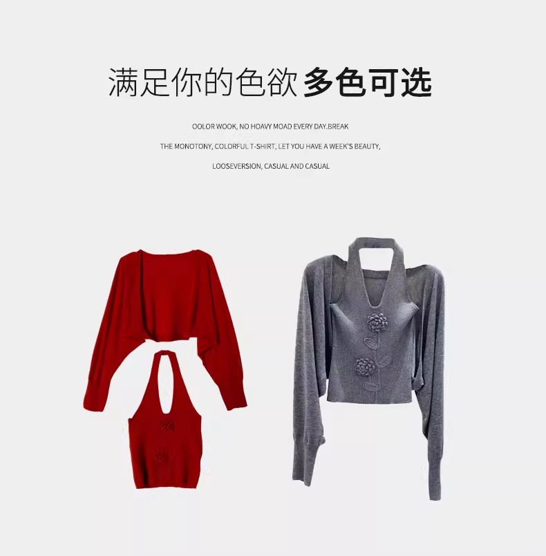 【门店同款】ENJOY秋季“光阴序语”复古玫瑰挂脖针织两件套 164843119