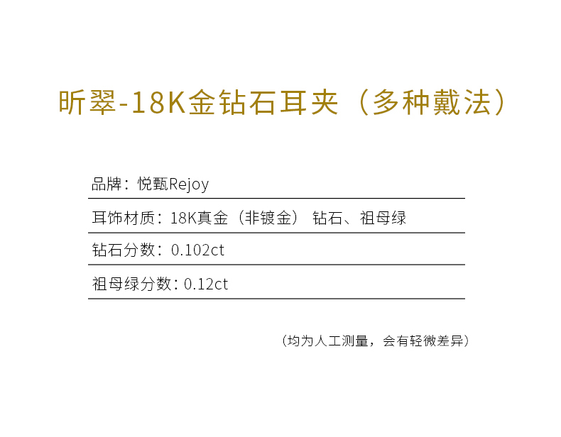 【天猫同款】18k金两戴款钻石耳夹 昕翠