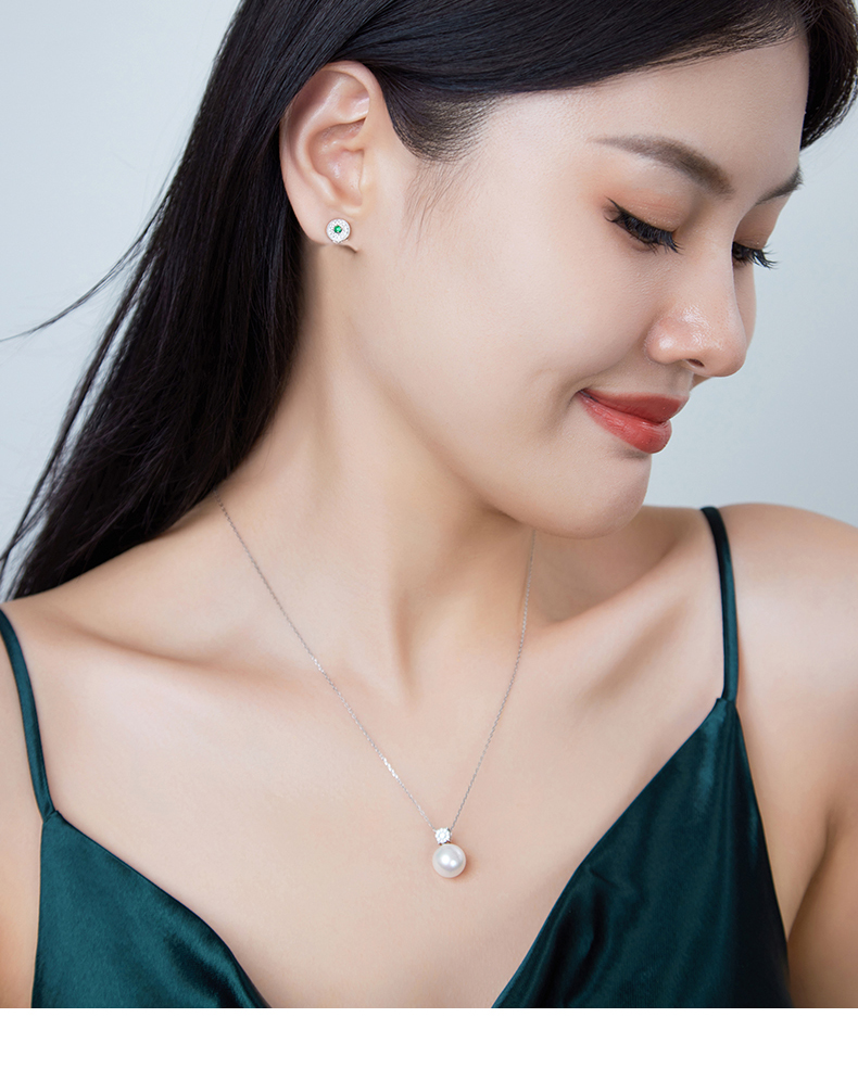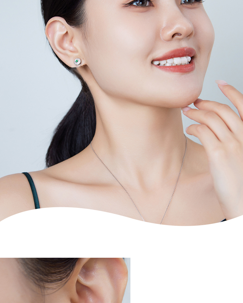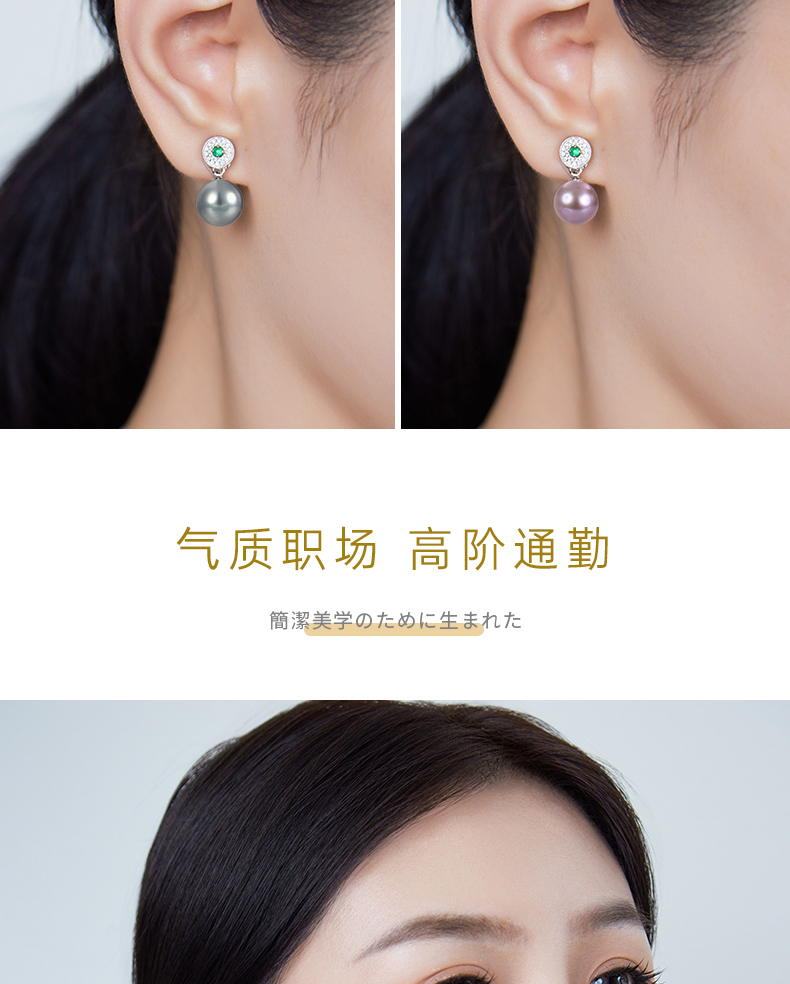 【天猫同款】玉塔-和田玉黑青玉钻石耳夹