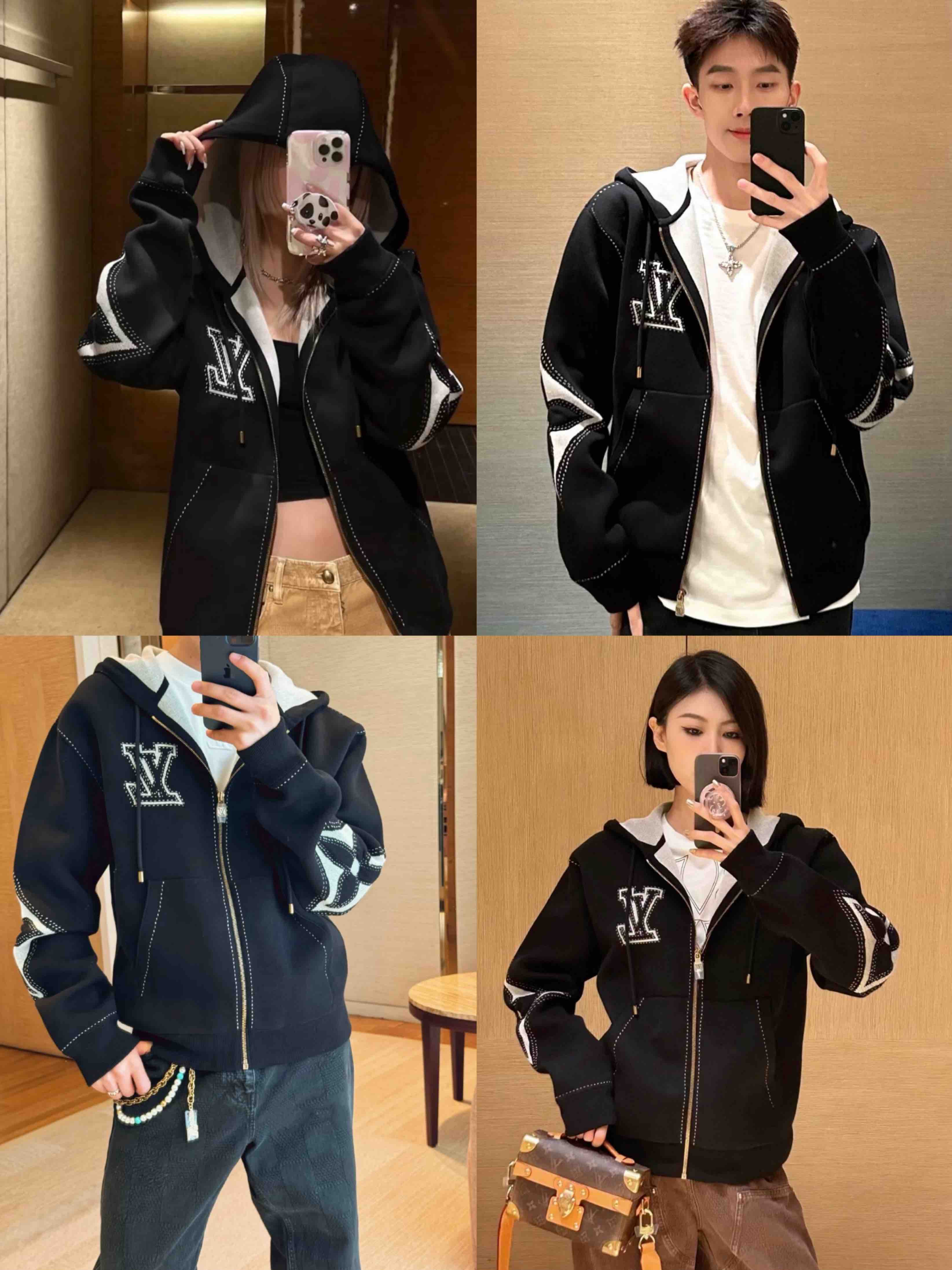 L-S 四叶草嵌花连帽拉链衫