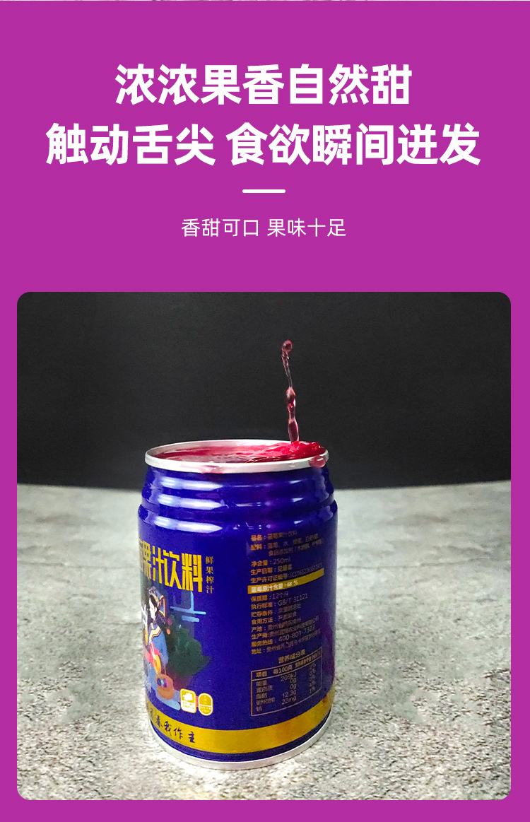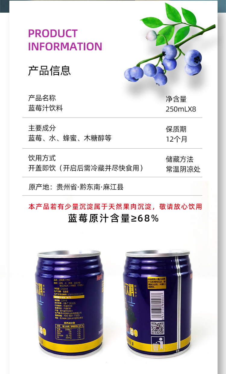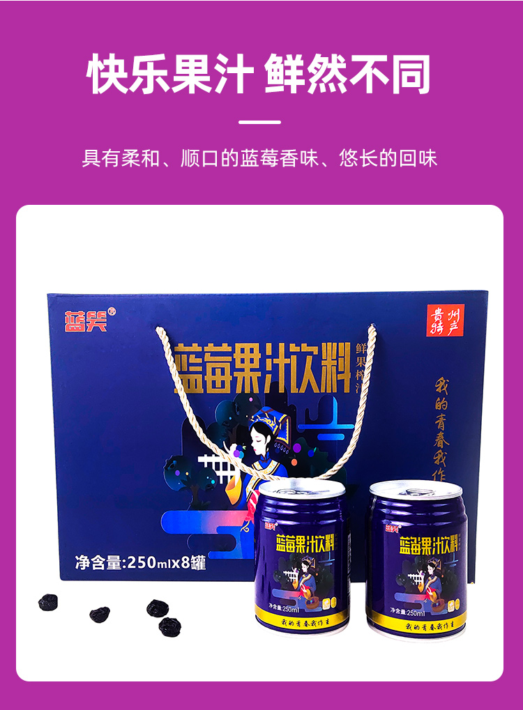 D蓝瑞蓝莓果汁250ml(原汁含量68%)
