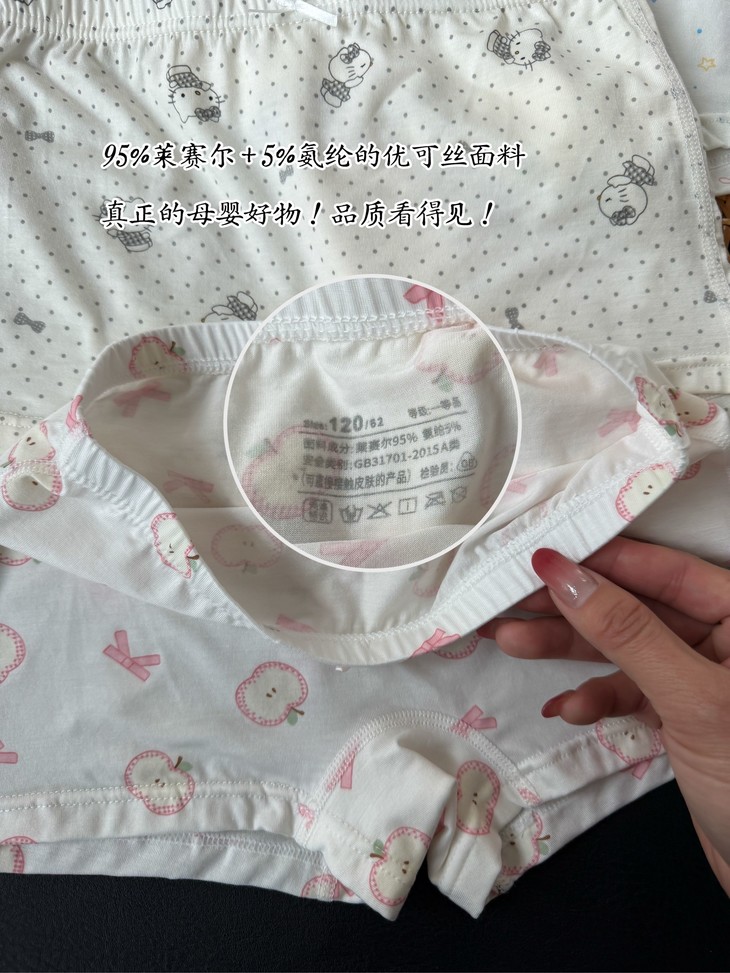 颜值在线,舒适更要满分!95%莱赛尔 + 5%弹力氨纶,亲肤得像第二层肌肤,透气吸汗,让活泼好动的宝宝时刻干爽舒适。 A类婴幼儿安全标准,是妈妈放心的保障!环保印染,无刺激,娇嫩肌肤也能安心接触。 专为儿童设计的舒适细节:宽边橡筋,不勒小肚子,无骨缝制减少摩擦!