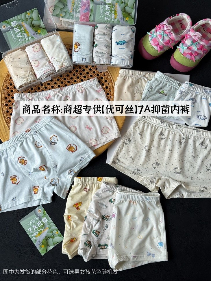 【团长实拍介绍】 商超zhuan供优可丝7A抑菌儿童内裤! 采用高端优可丝莱赛尔面料,95%莱赛尔5%氨纶成分 质感柔软细腻,宝宝的贴身衣物必须选好的 7A抗菌工艺,有效抑菌安全放心 一盒三条装,花色随机发!可选男女宝花色!