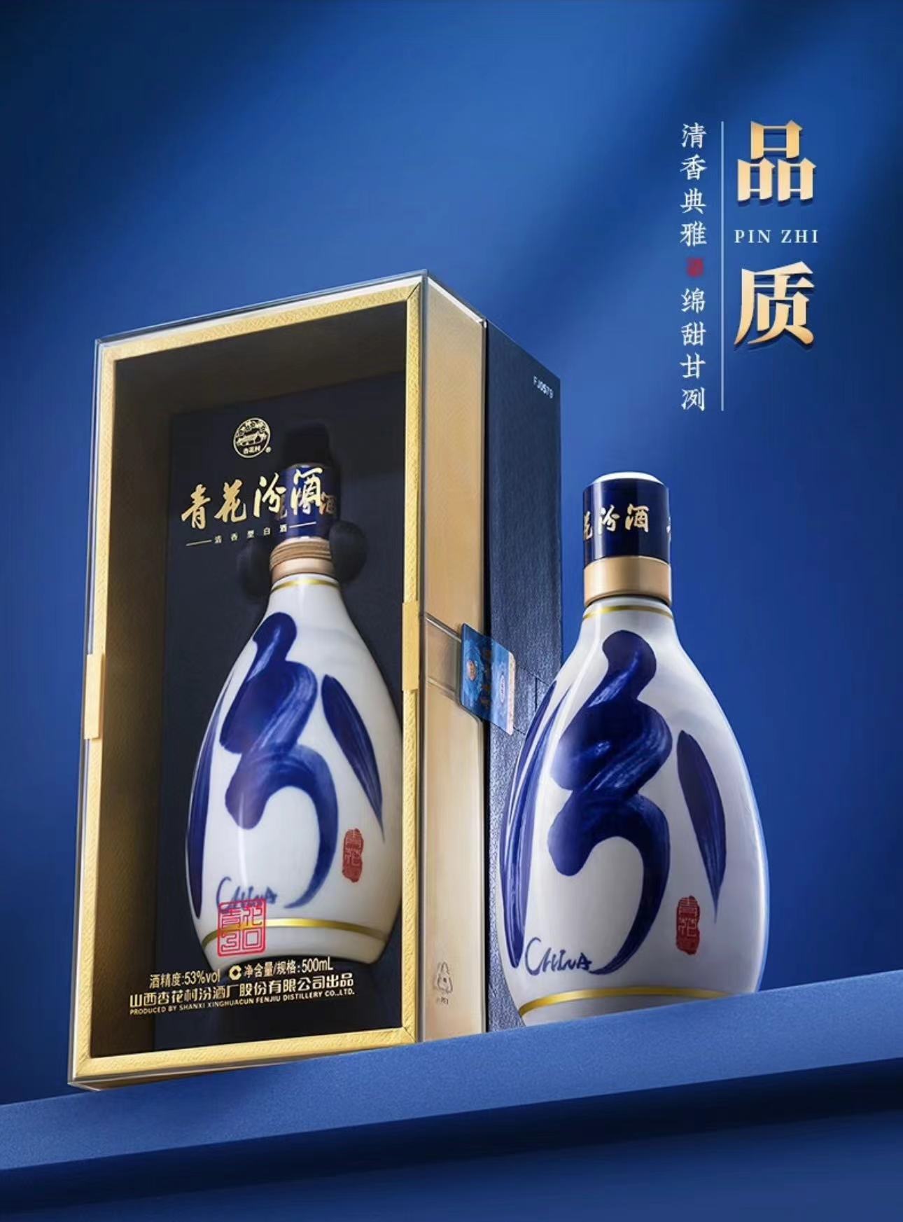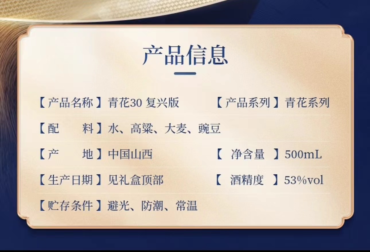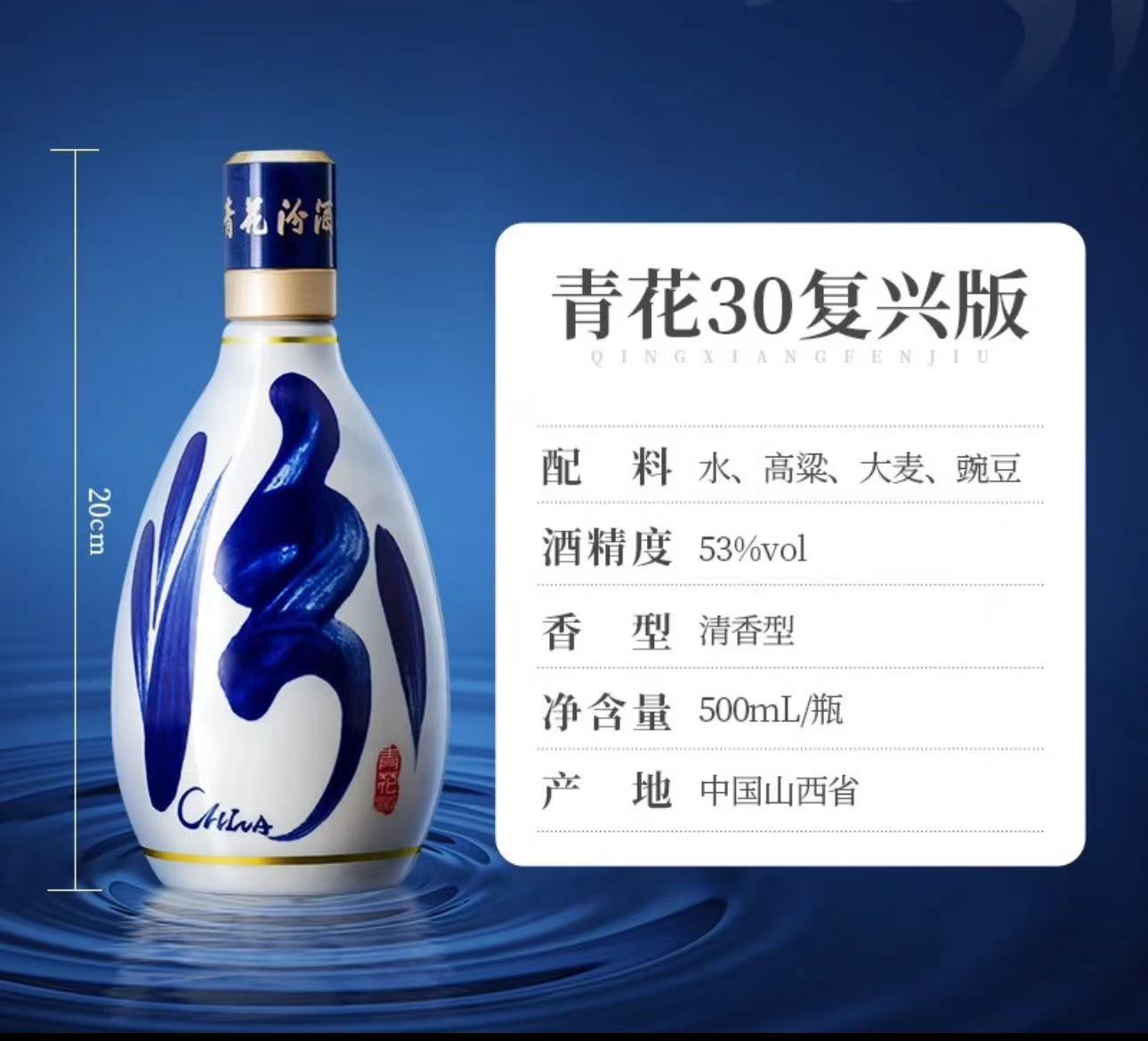 汾酒 青花30复兴版 清香型白酒 53度 500mL 1瓶 单瓶装