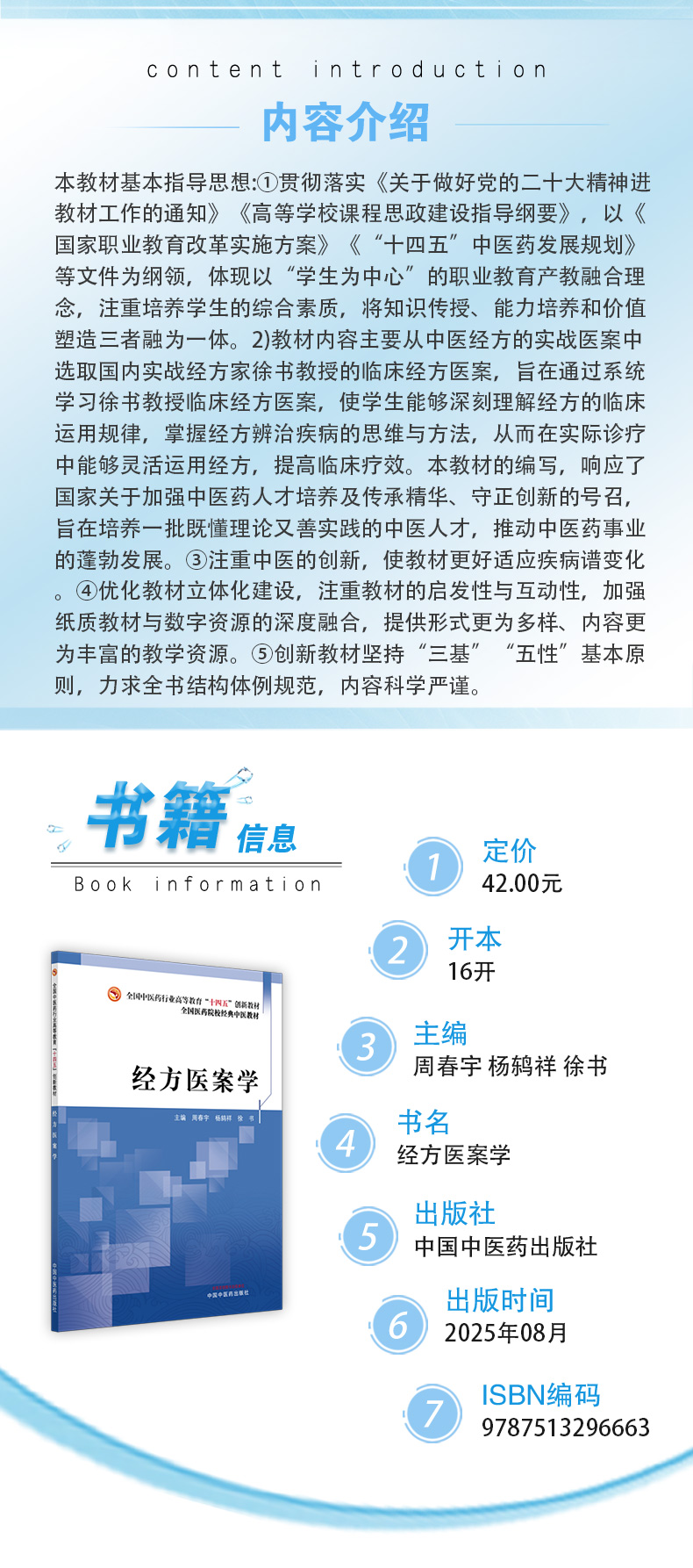 经方医案学 十四五创新教材全国医药院校经典中医教材 周春宇 杨鸫祥 徐书 主编 9787513296663 中国中医药出版社