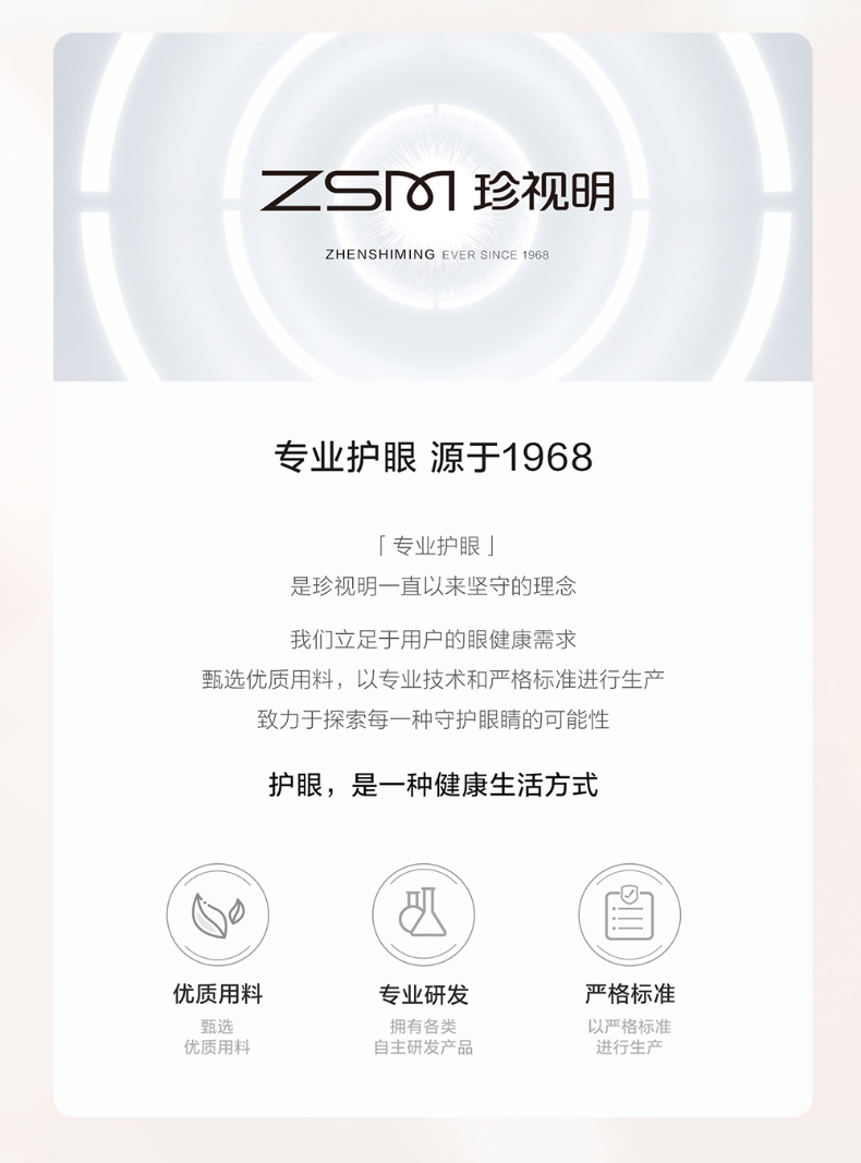 珍视明源于1968年,横跨半个世纪的护眼传承,秉承眼部护理的传世经典,天然成分、药研配方,让双眼在天然滋养中,再现明眸清瞳,舒缓修护眼周肌肤,缓解眼部疲劳。