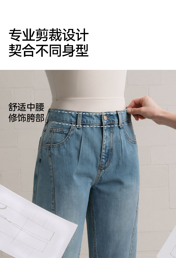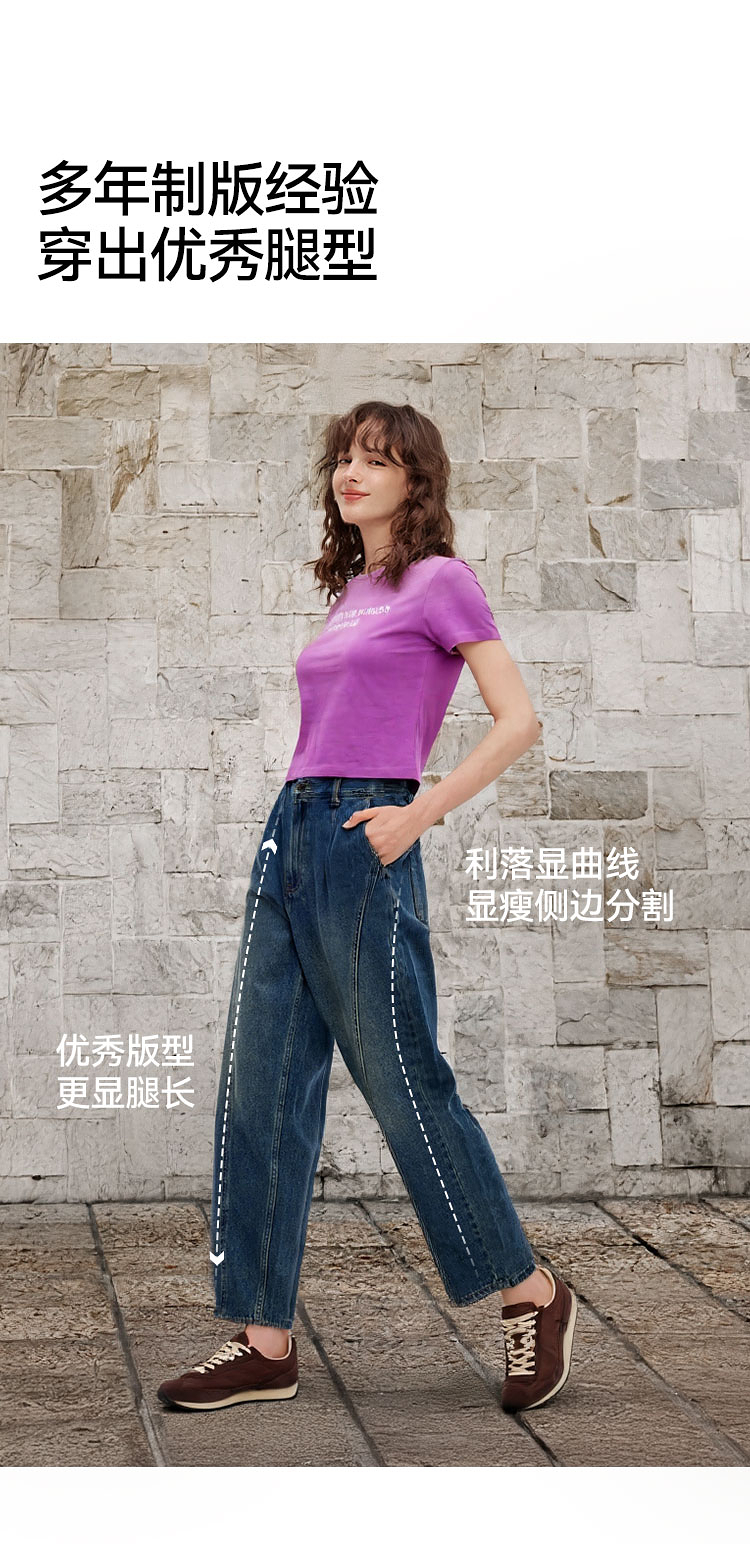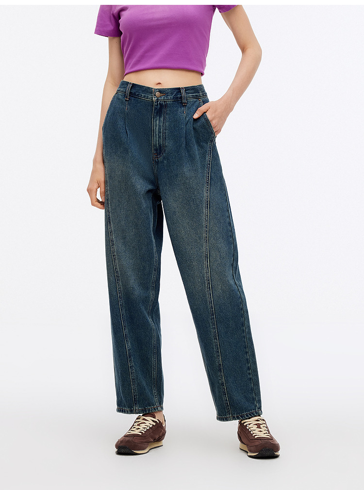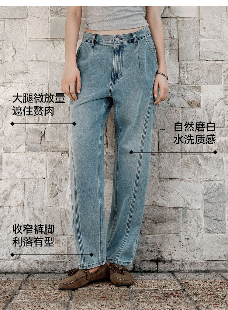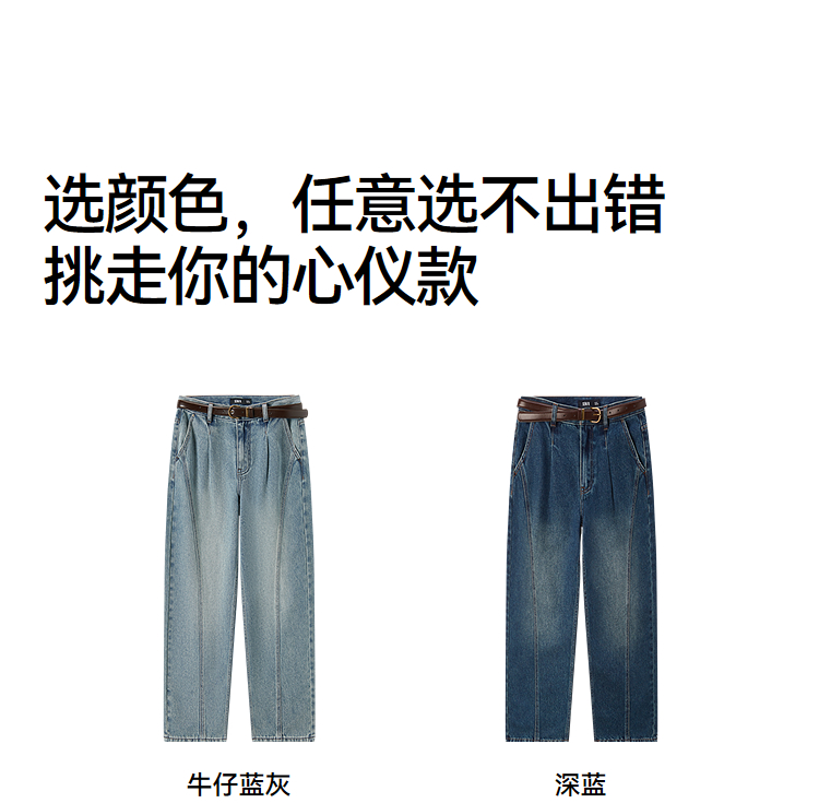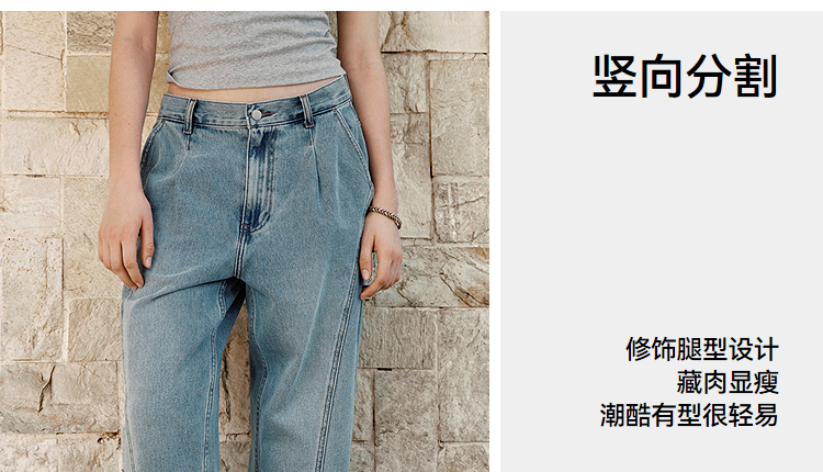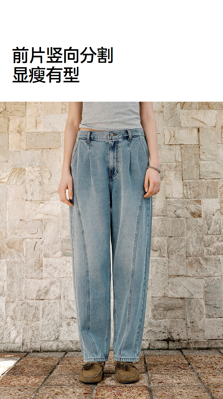 森马牛仔裤女腰带遮肉宽松锥形裤显腿长秋季显瘦分割磨毛长裤潮酷