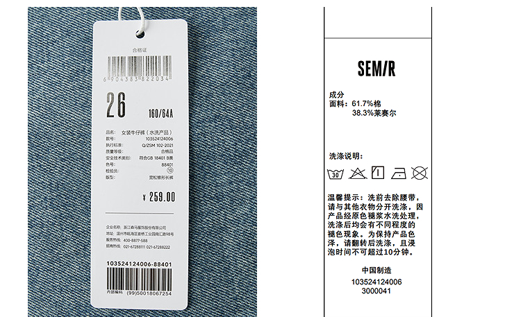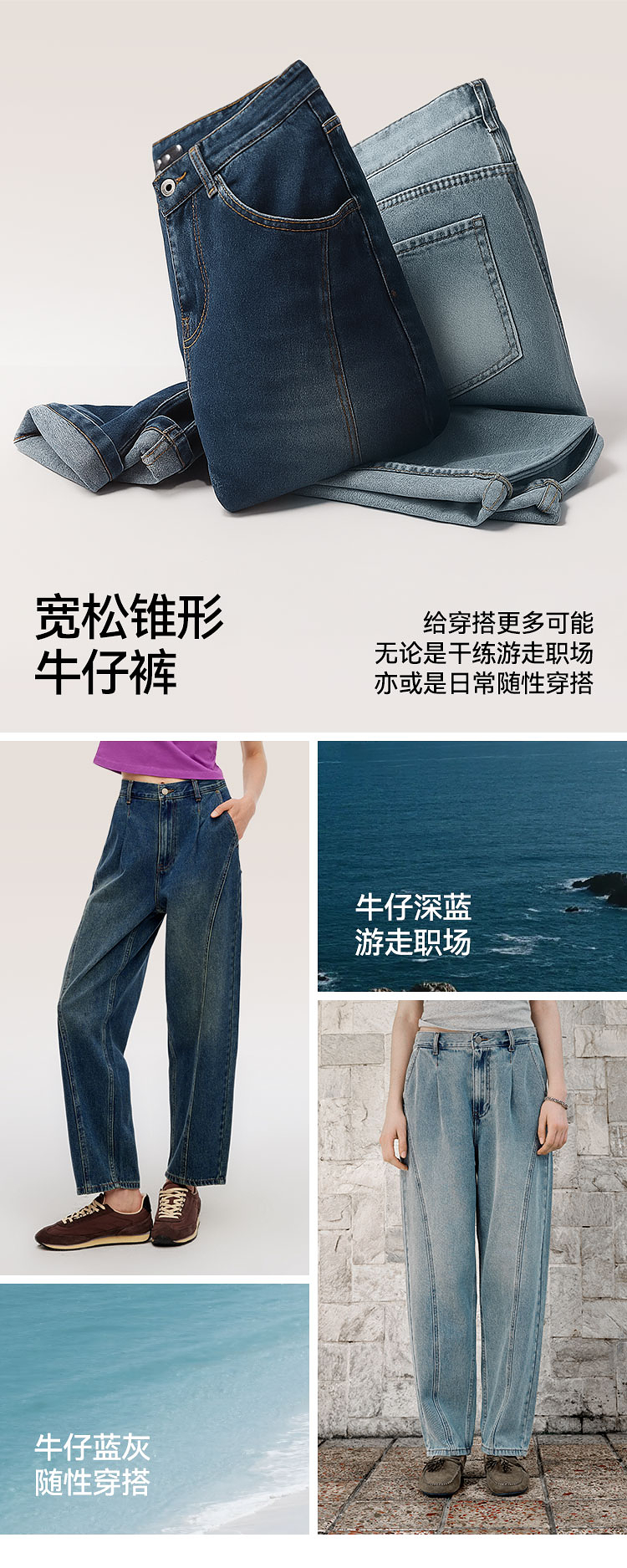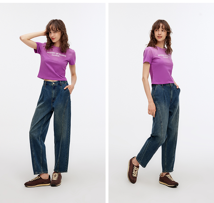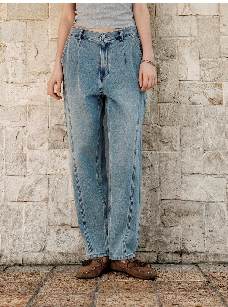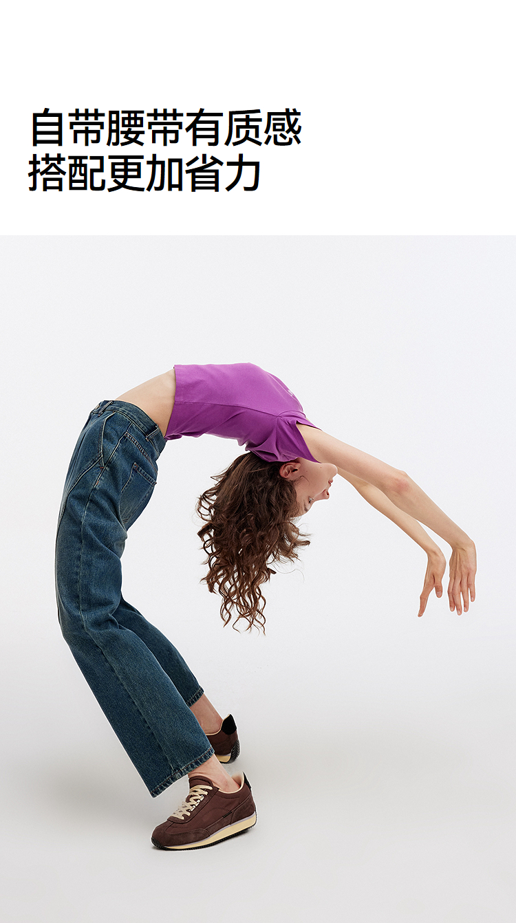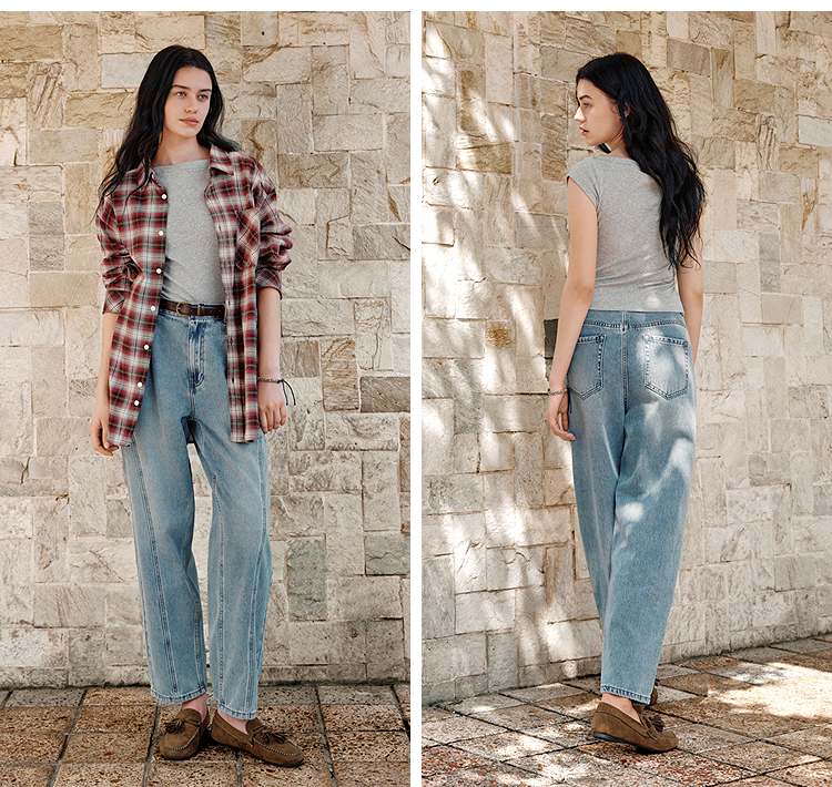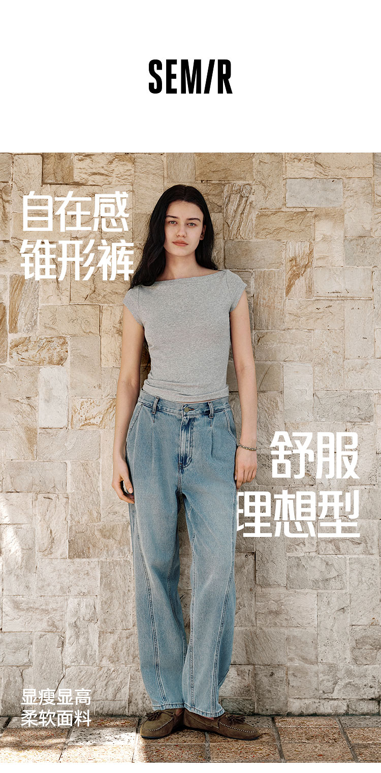 森马牛仔裤女腰带遮肉宽松锥形裤显腿长秋季显瘦分割磨毛长裤潮酷