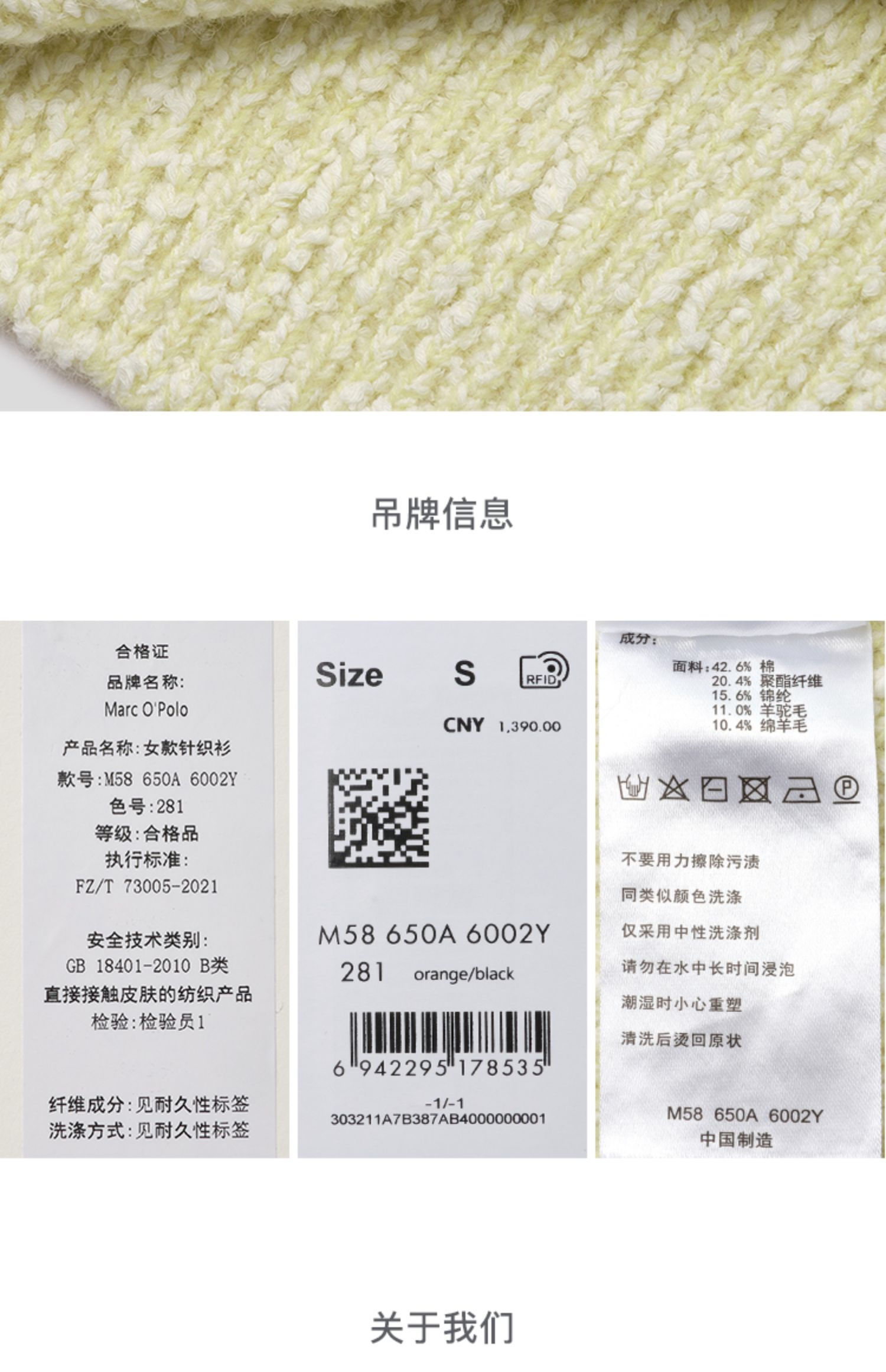 Marc O'Polo/MOP 秋季新款花纱圆领合体版型长袖套头针织衫女