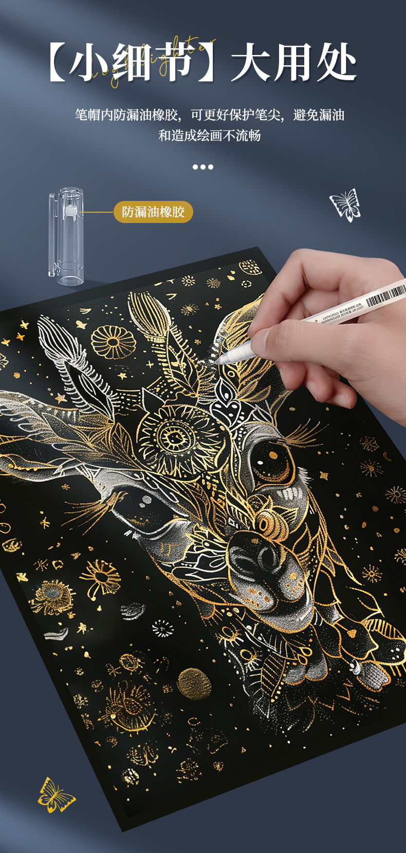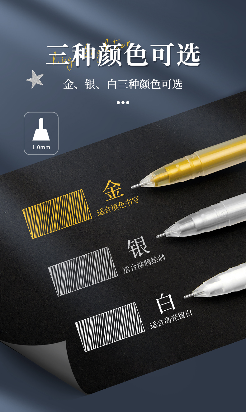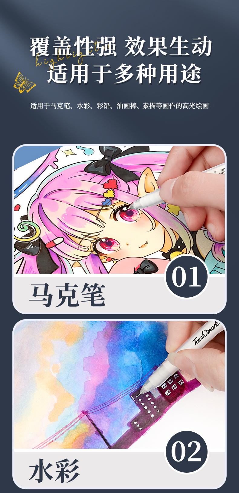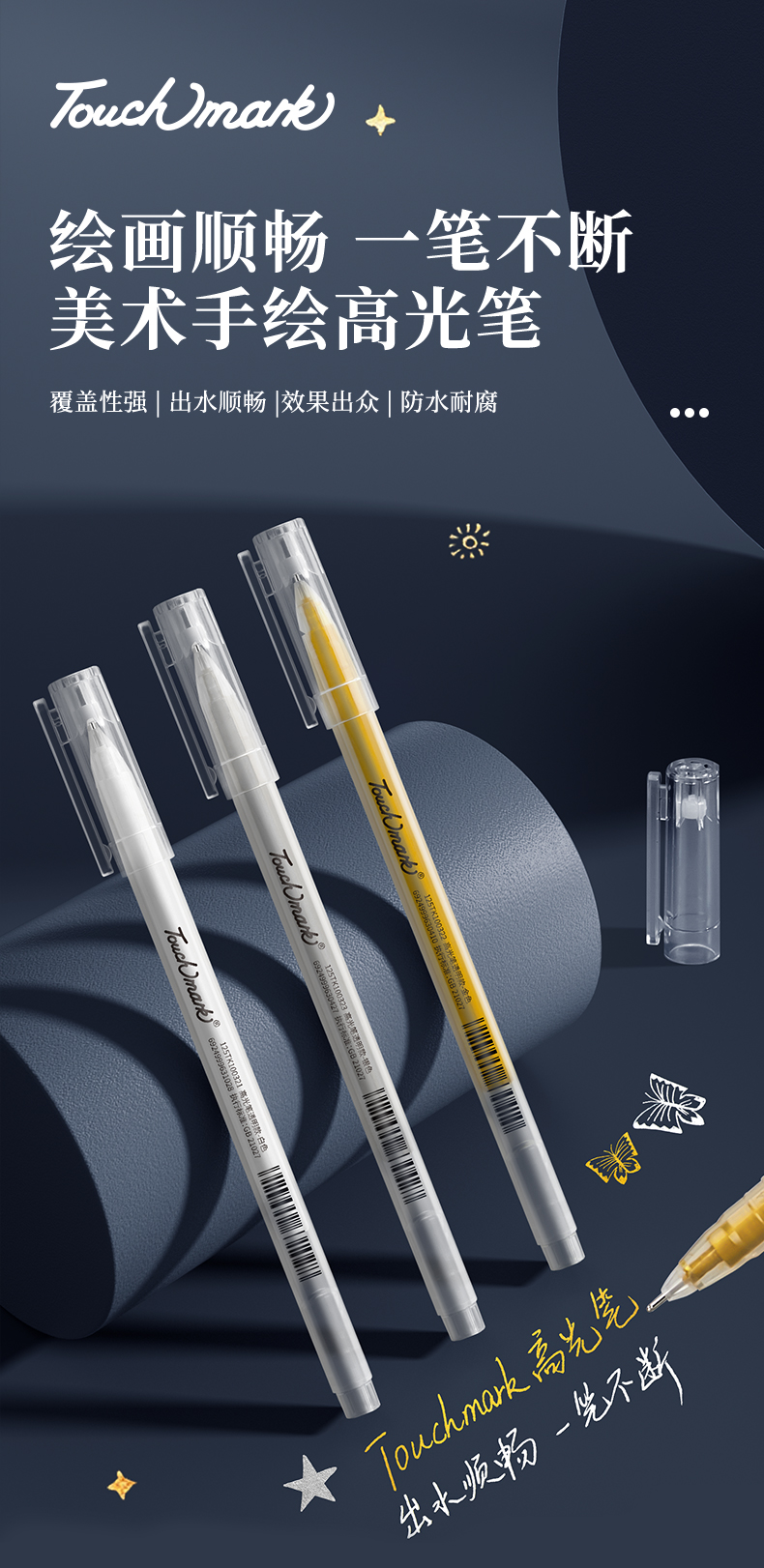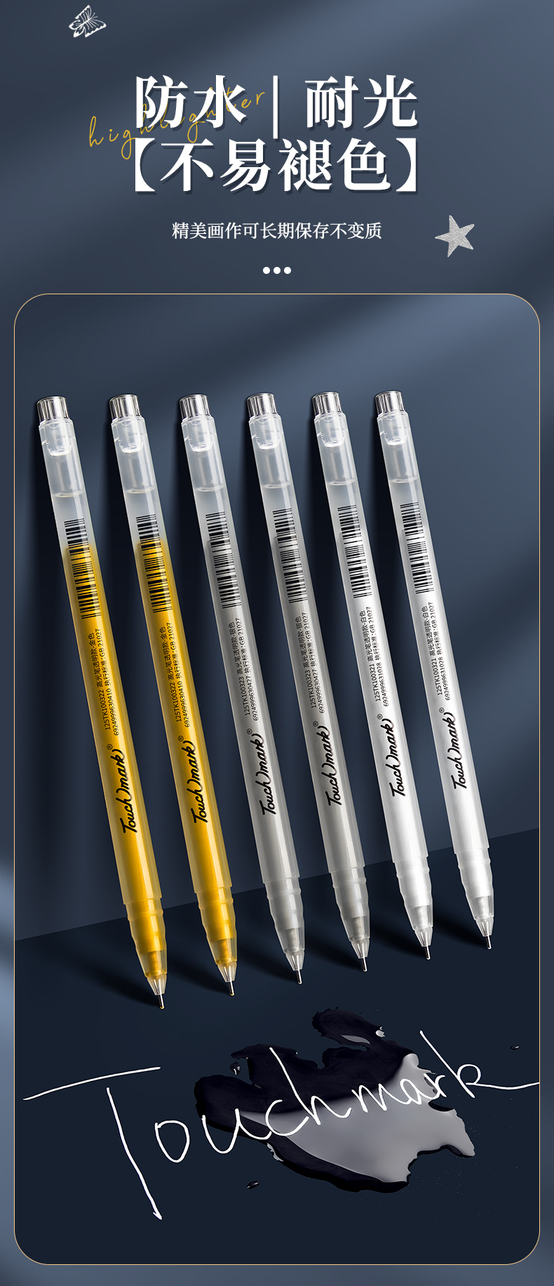 Touchmark泰驰马克-高光笔-金白银 美术绘画防水勾线高光笔