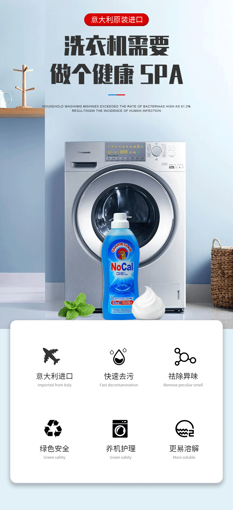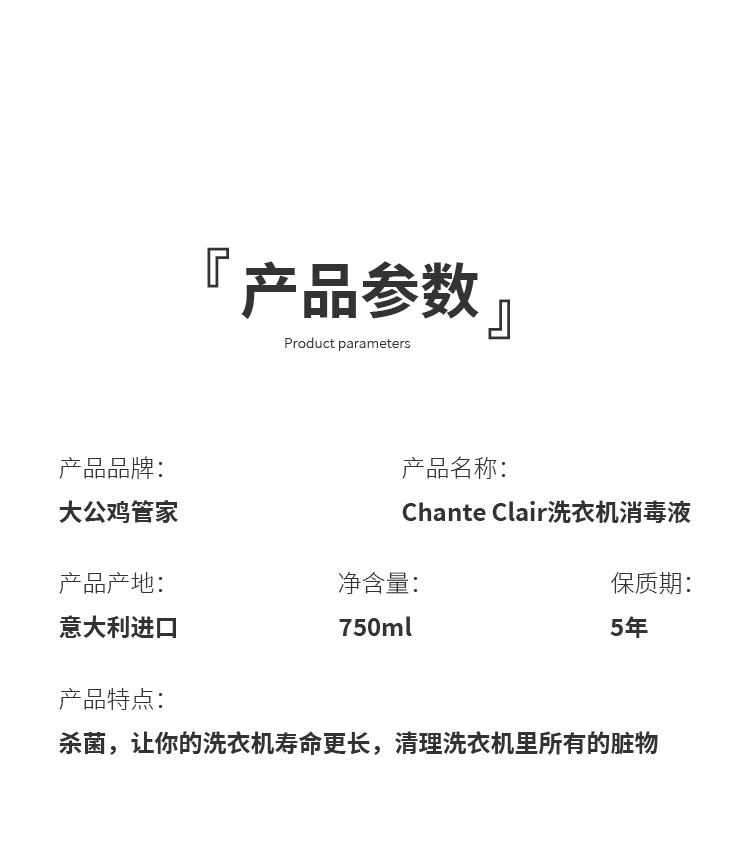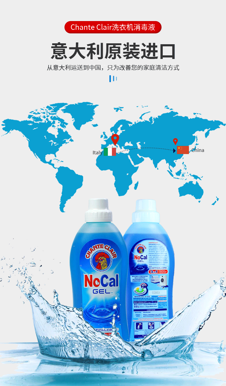 【中欧班列精选】ON 意大利大公鸡头洗衣机消毒液滚筒清洁除垢去污750ml
