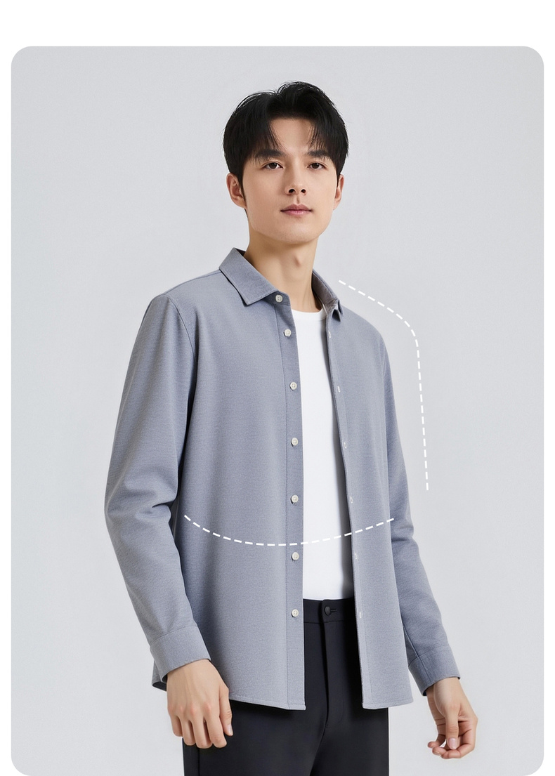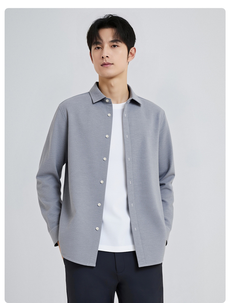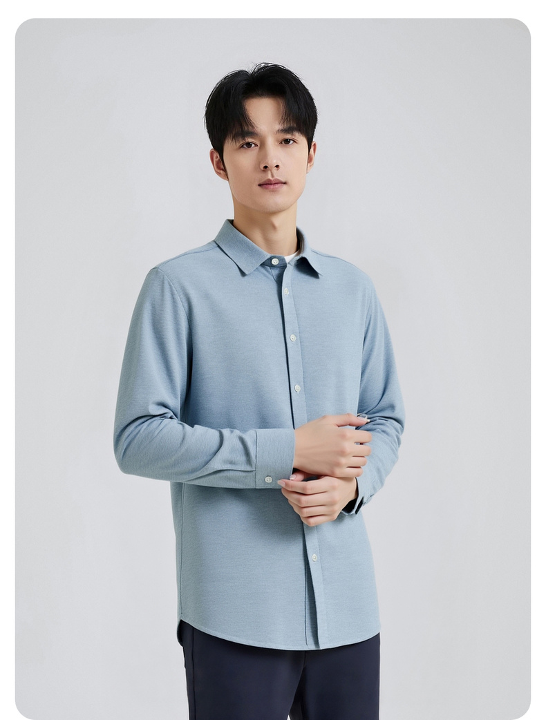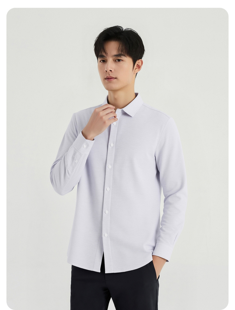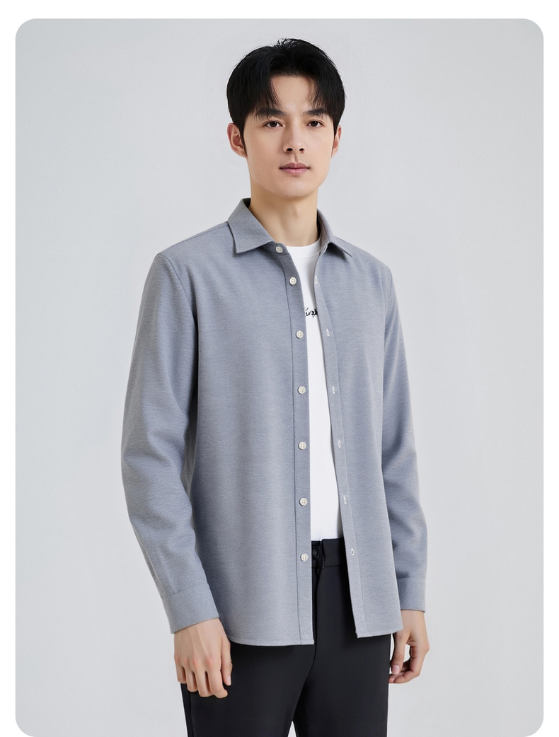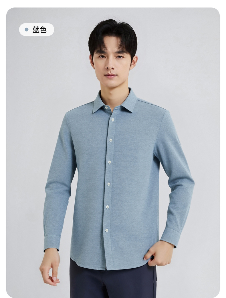 【含绵羊毛+莫代尔】圣得西男士纯色商务长袖衬衫2412952019A