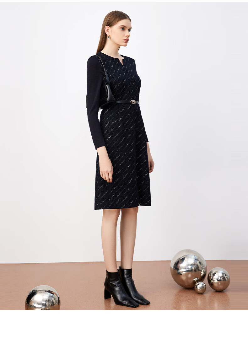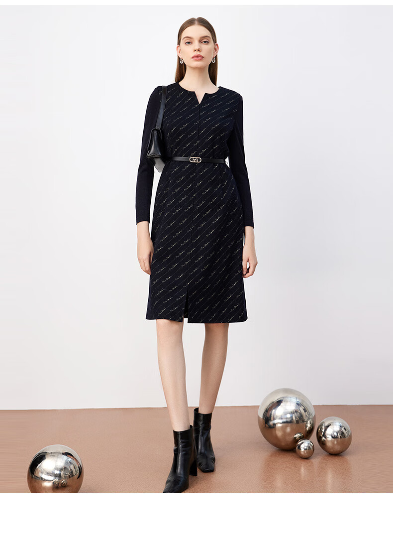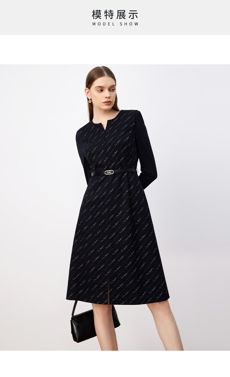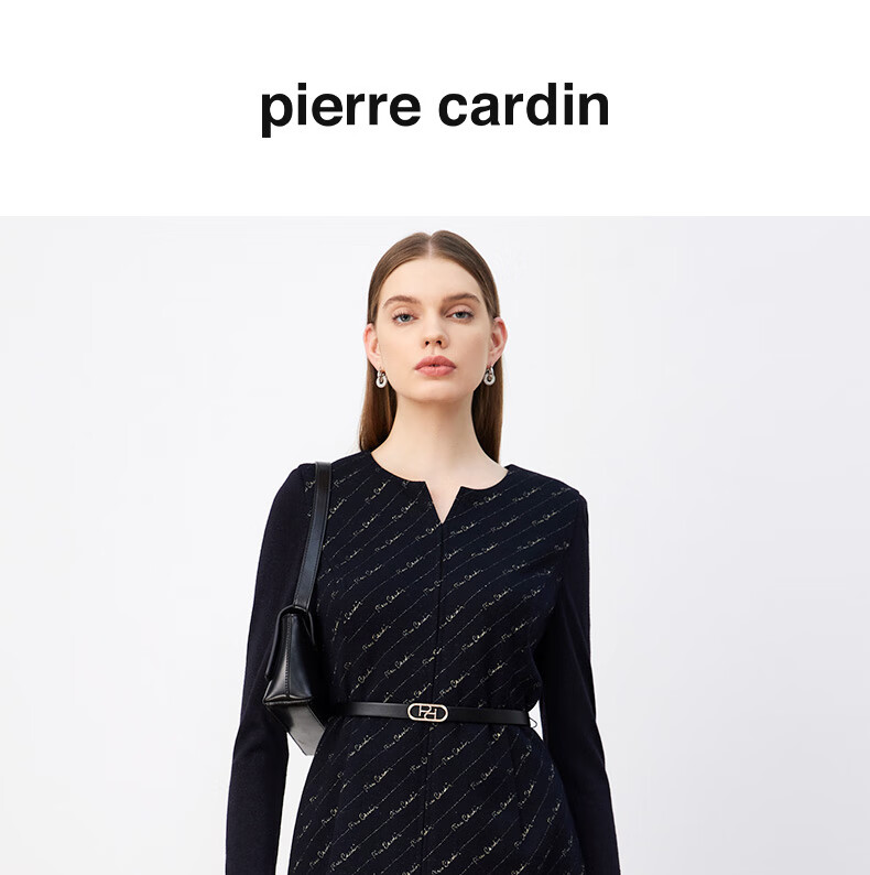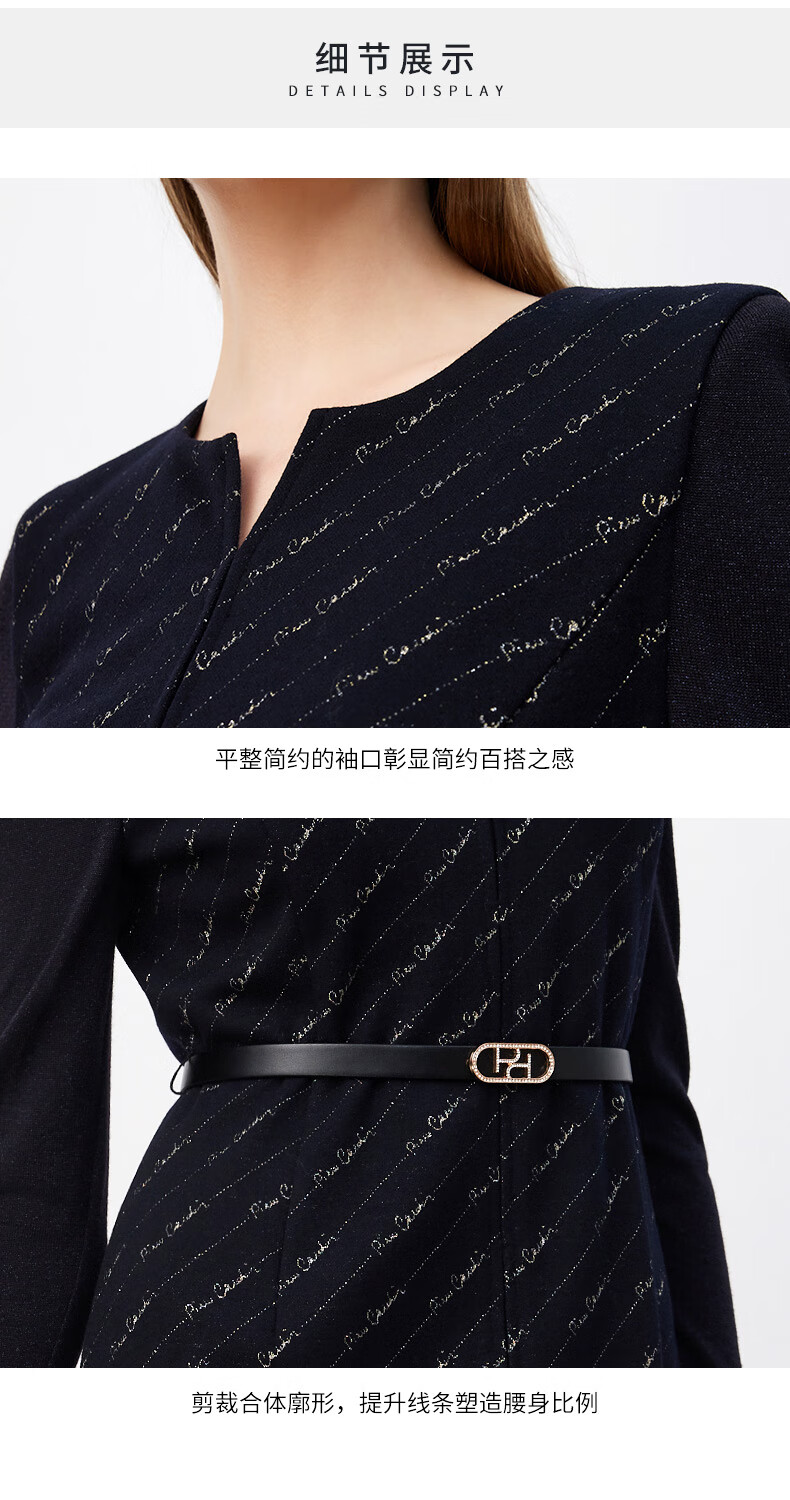 皮尔卡丹女装连衣裙藏蓝色长袖中长款稳重气质裙子P3430E3880N0