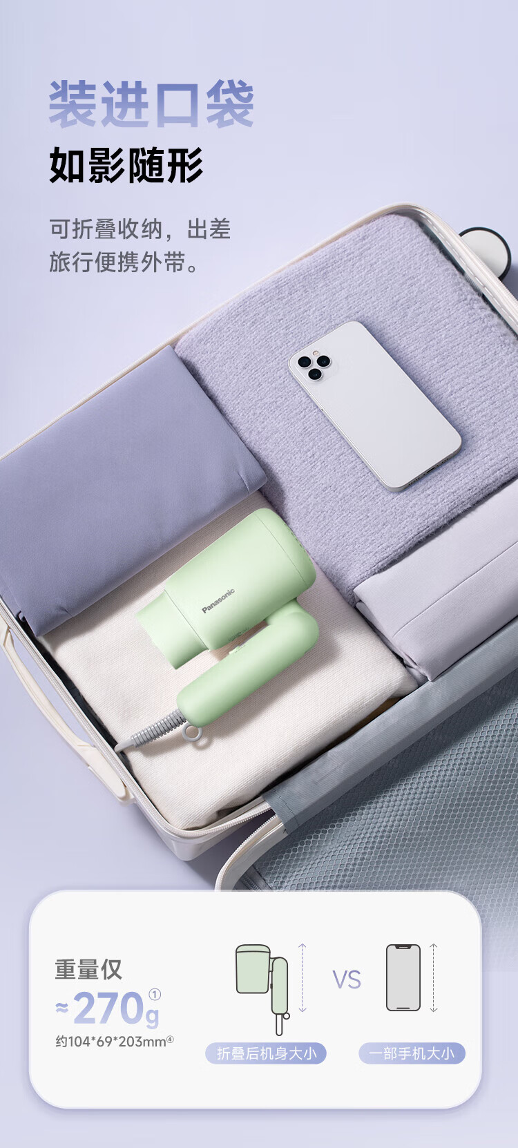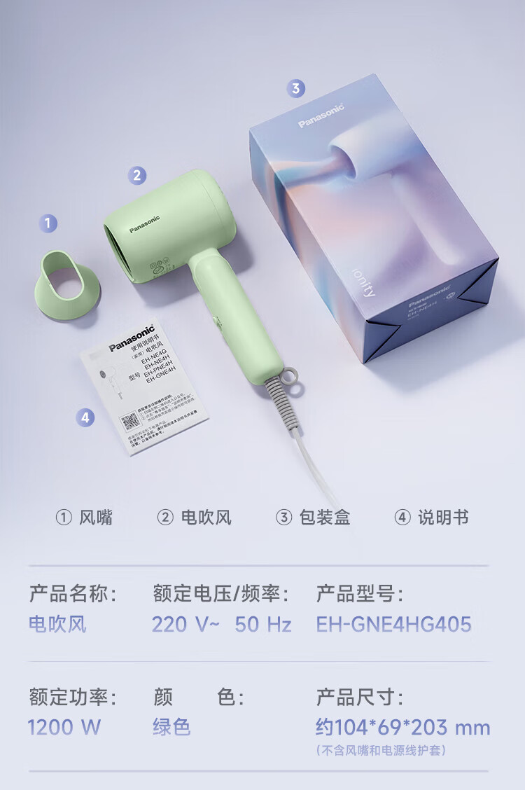 【632优选】松下(Panasonic)小轻筒电吹风机绿色 GNE4HG405 -SH1117