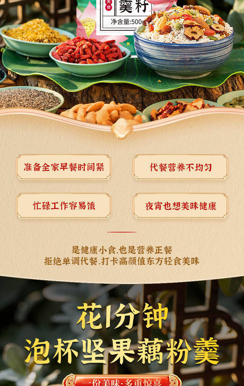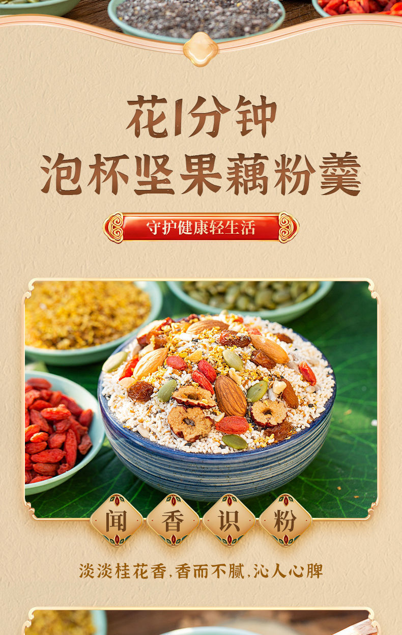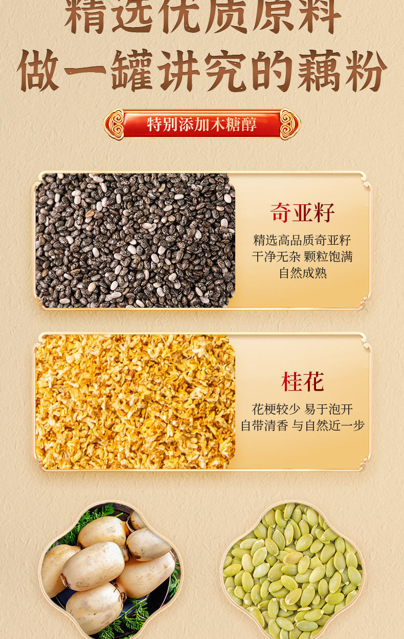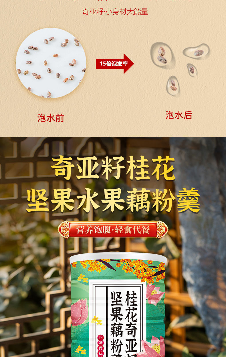 【神价3罐装 | 送碗勺】燕花姬 奇亚籽水果藕粉+桂圆红枣枸杞藕粉+桂花坚果藕粉 500g每罐 铁罐装