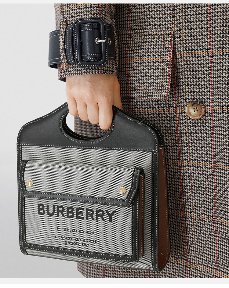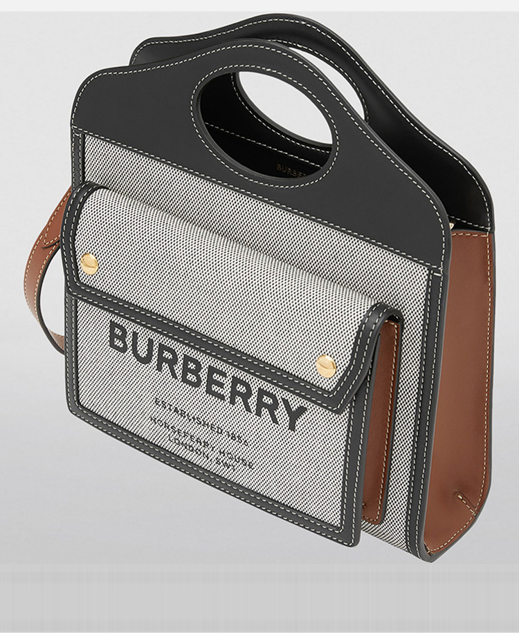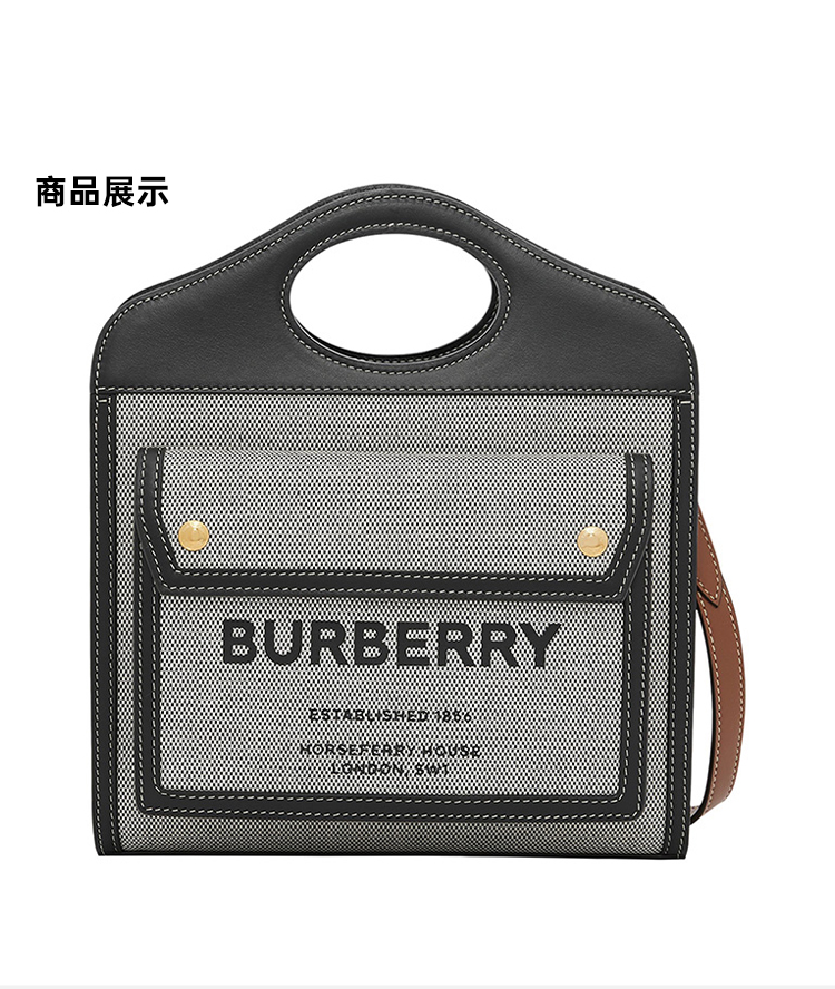 BURBERRY 巴宝莉 女士 迷你三色棉帆布拼皮革口袋包 混色 8039363 A1189