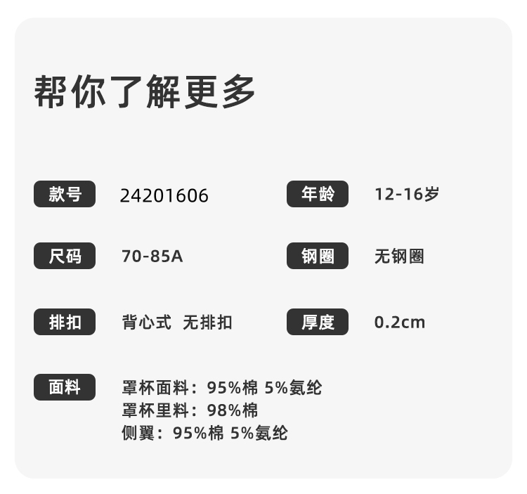 【第3件0元】熳洁儿 纯棉少女围二阶段12-16岁背心式文胸考神附体印花商场同款24201606