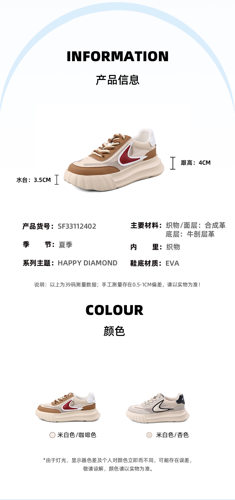 Safiya/索菲娅2023新品新潮撞色勾勾透气网面松糕厚底休闲鞋 SF33112402