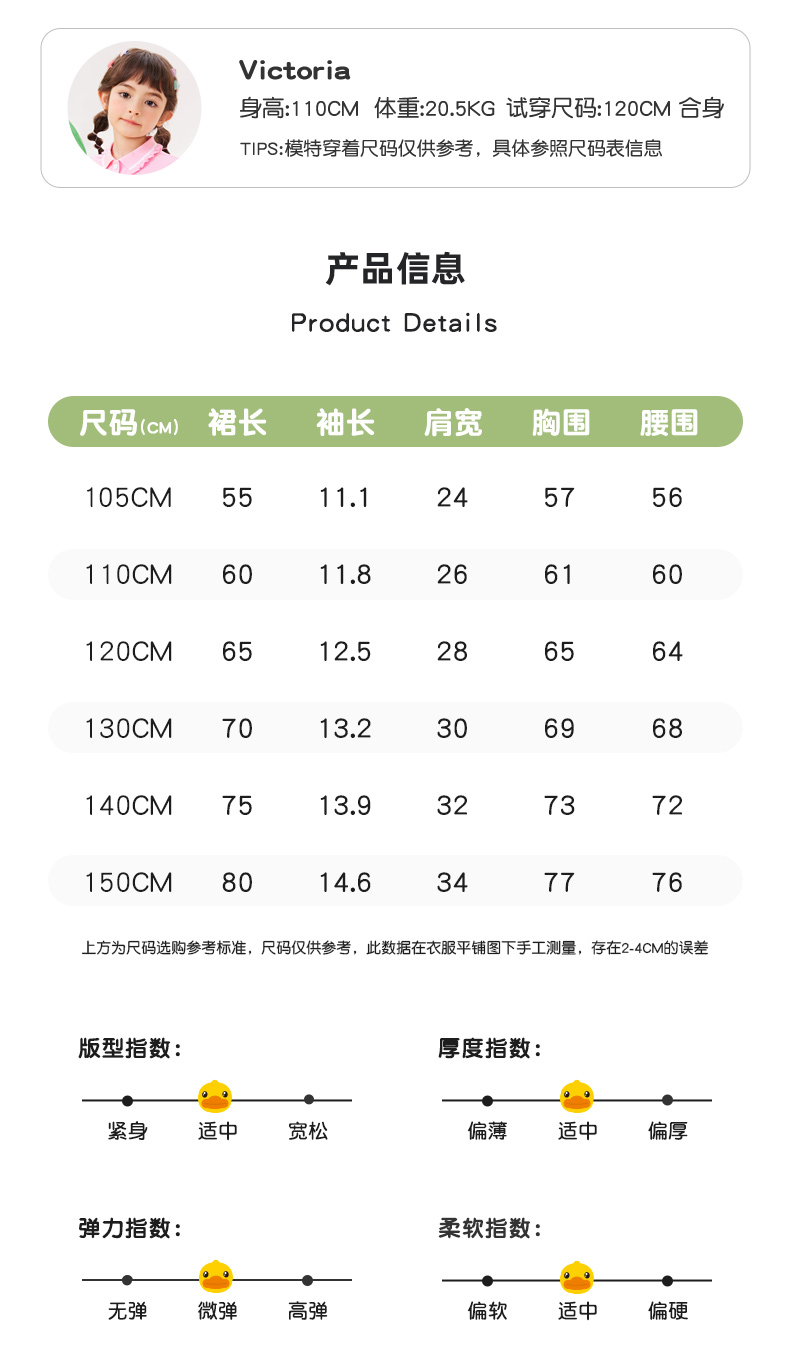 B.Duck小黄鸭童装夏季女童连衣裙110-160 FF2680003