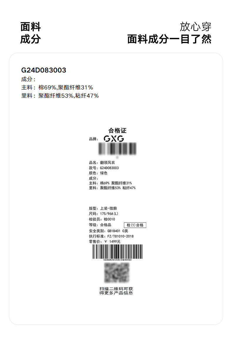 GXG男装 绿色斜纹面料基础简约宽松翻领风衣外套男士 24秋季热卖