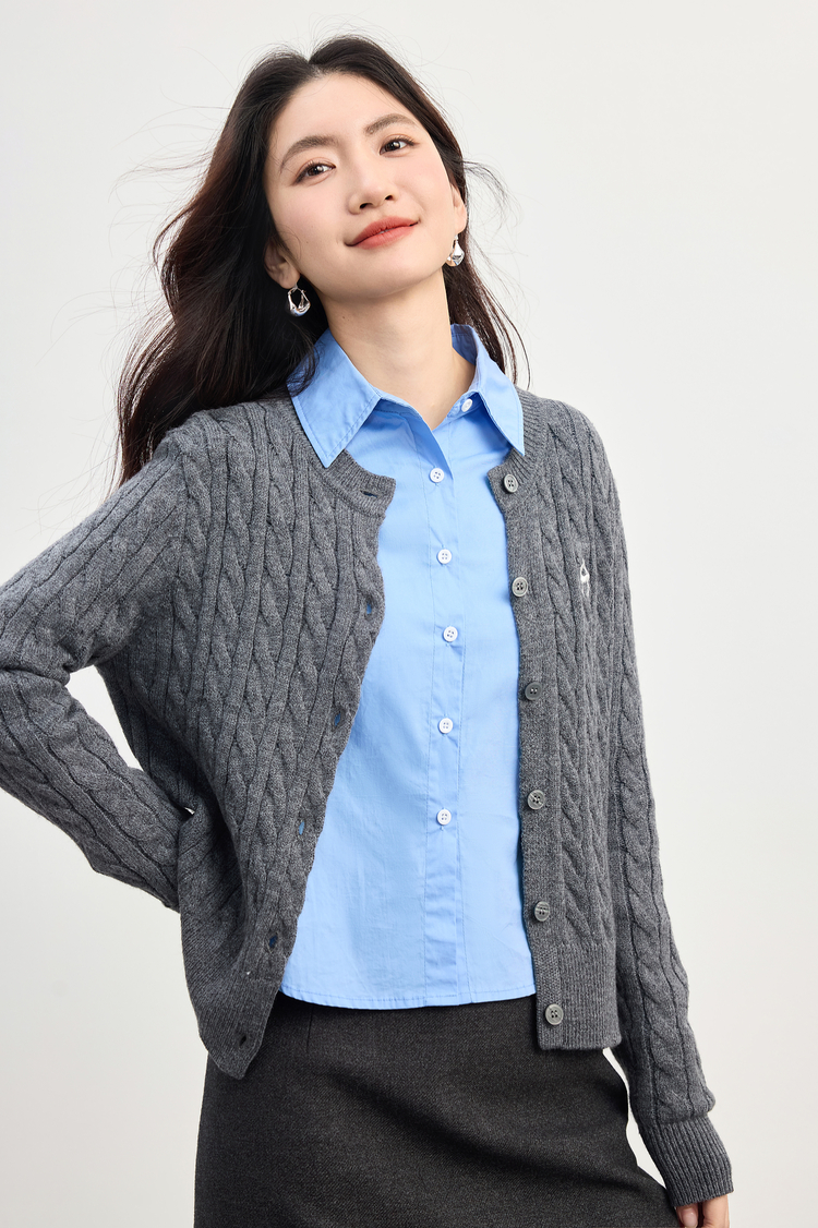 【09/26新品】熙世界老钱风复古绞花毛衣女秋冬2025年新款正肩圆领羊毛针织开衫
