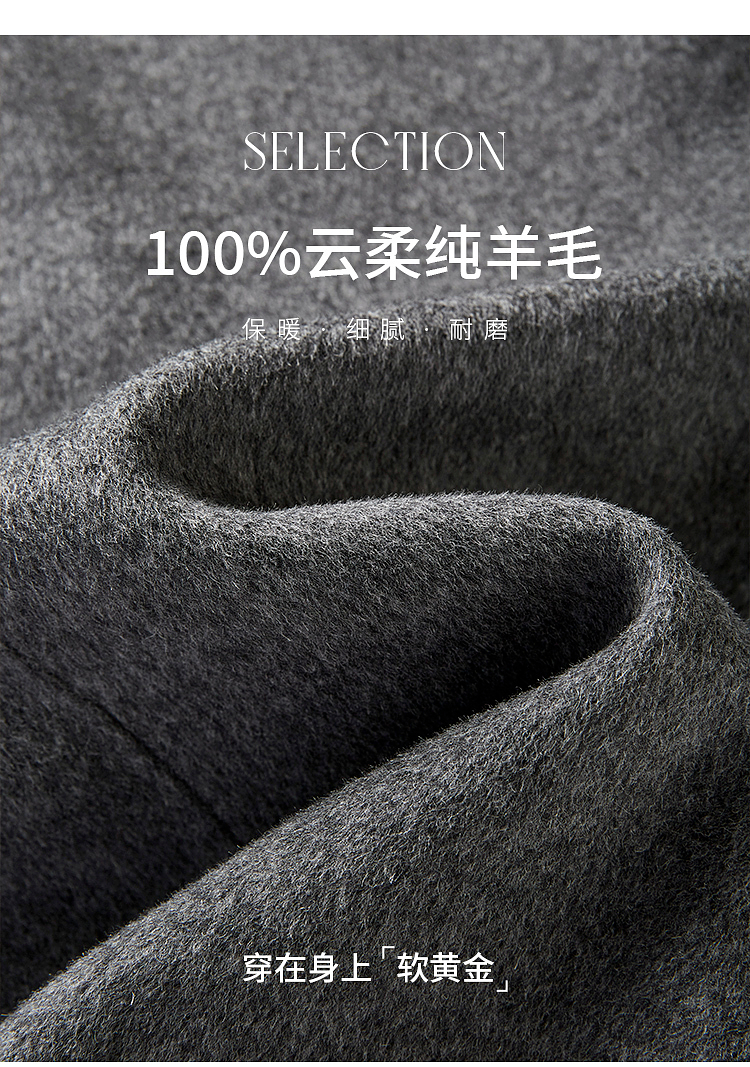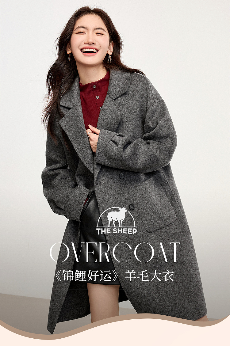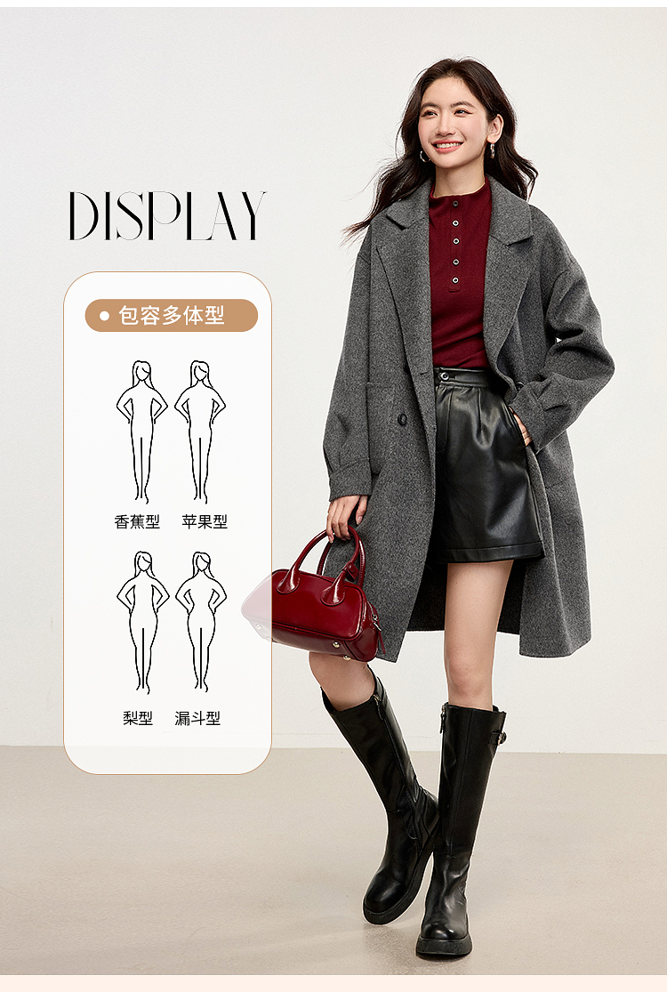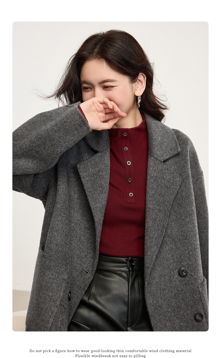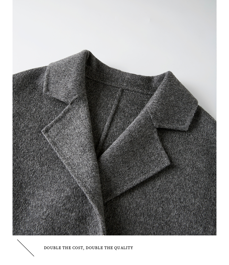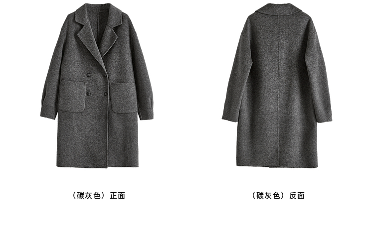 【年终特卖】熙世界翻驳领双面呢羊毛大衣女中长款冬季新款高级感灰色毛呢外套