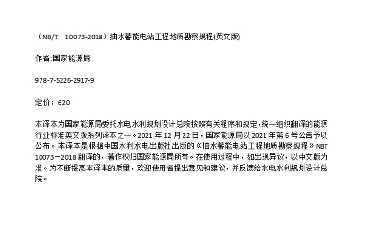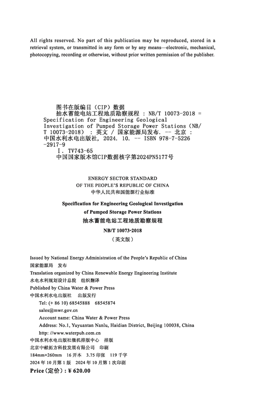 (NB/T 10073-2018)抽水蓄能电站工程地质勘察规程(英文版)