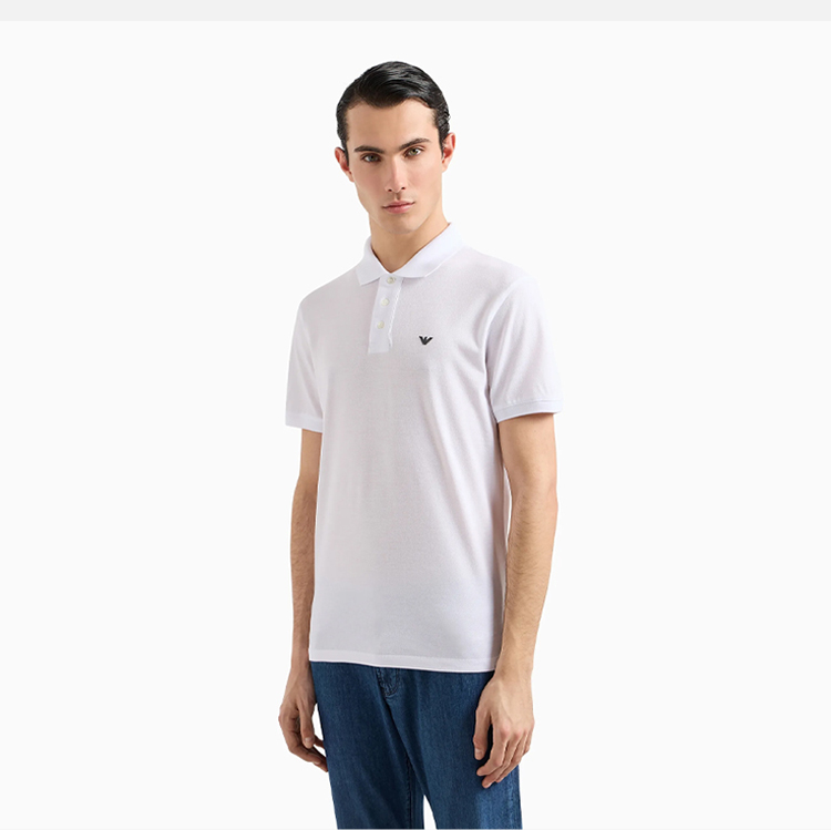 【一】EMPORIO ARMANI 阿玛尼 男士带微型鹰图案的丝光珠地网眼 短袖Polo衫 白色 8N1FQ2 1JTKZ 0100