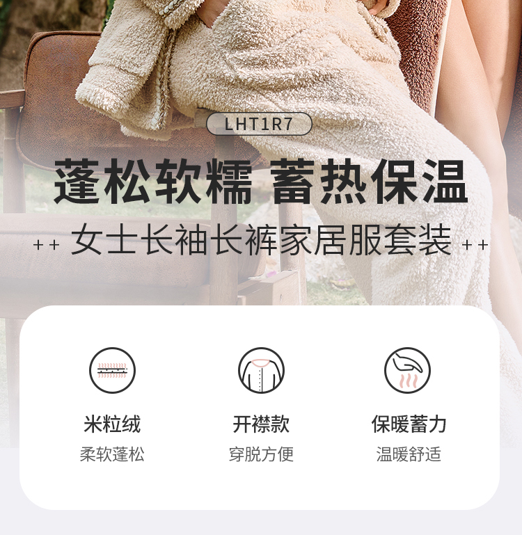 都市丽人睡衣会员精选长袖家居服米粒绒厚女士米粒绒套装LHT1R7