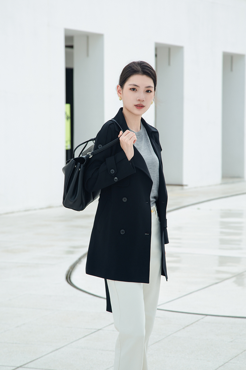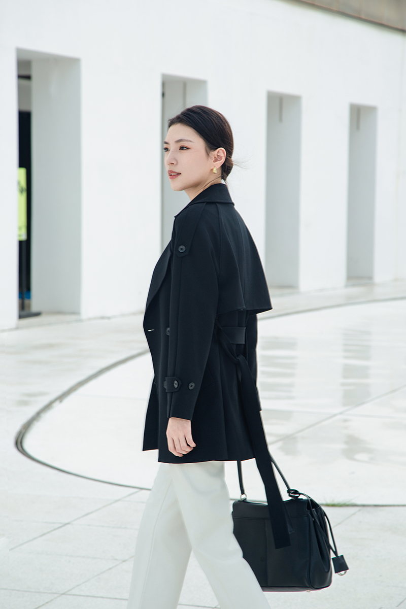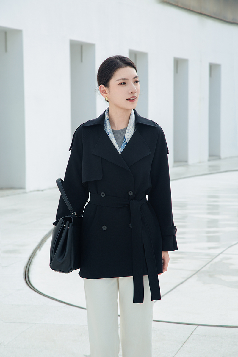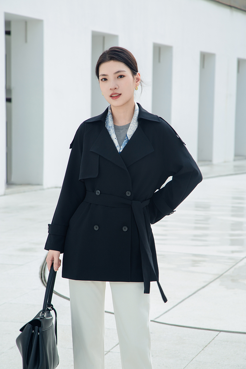 【双排扣短款风衣】24年秋冬新品女士西装款通勤黑色系带收腰上衣外套