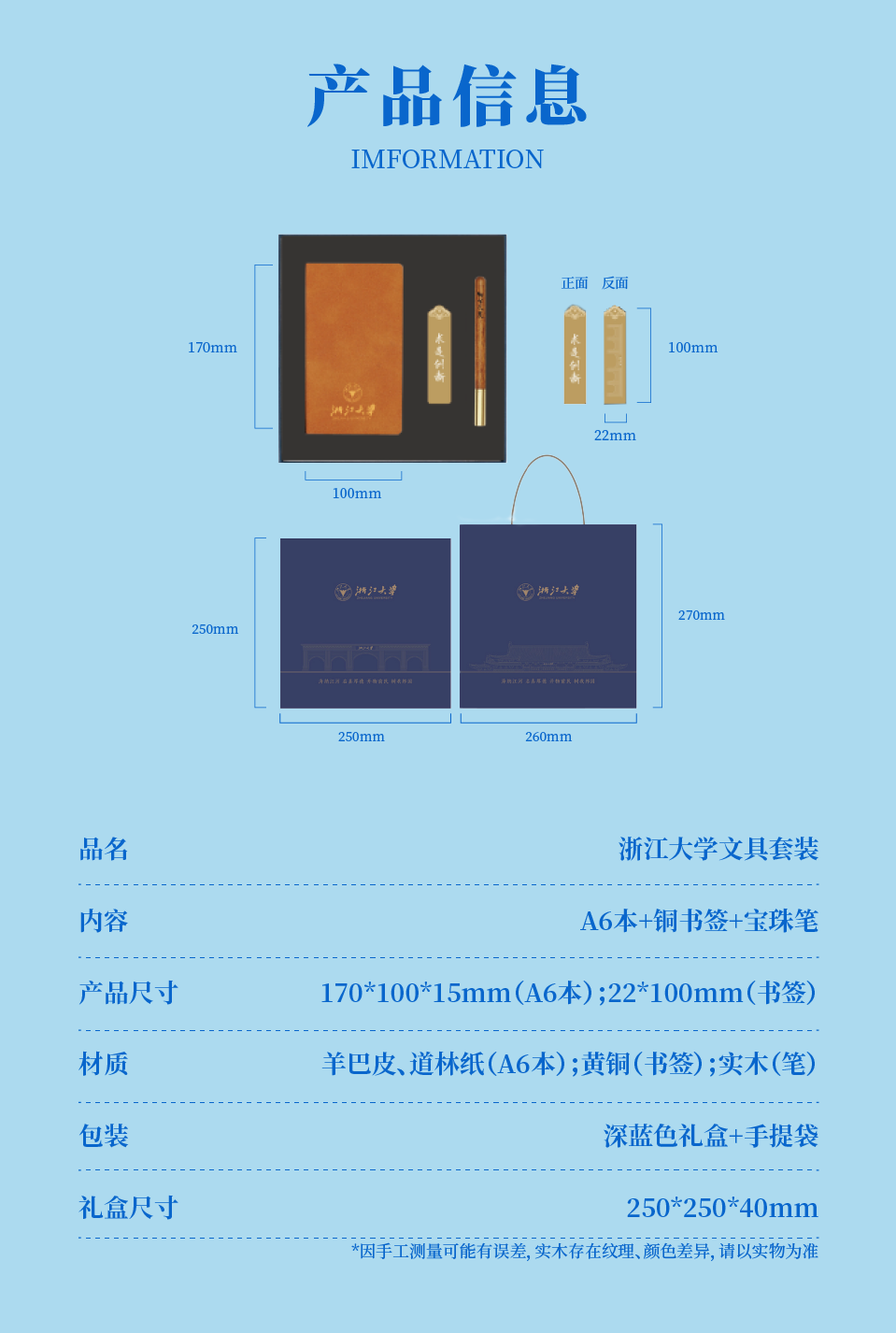 【浙大文创】浙江大学标识系列文具套装(A6本+铜书签+宝珠笔)