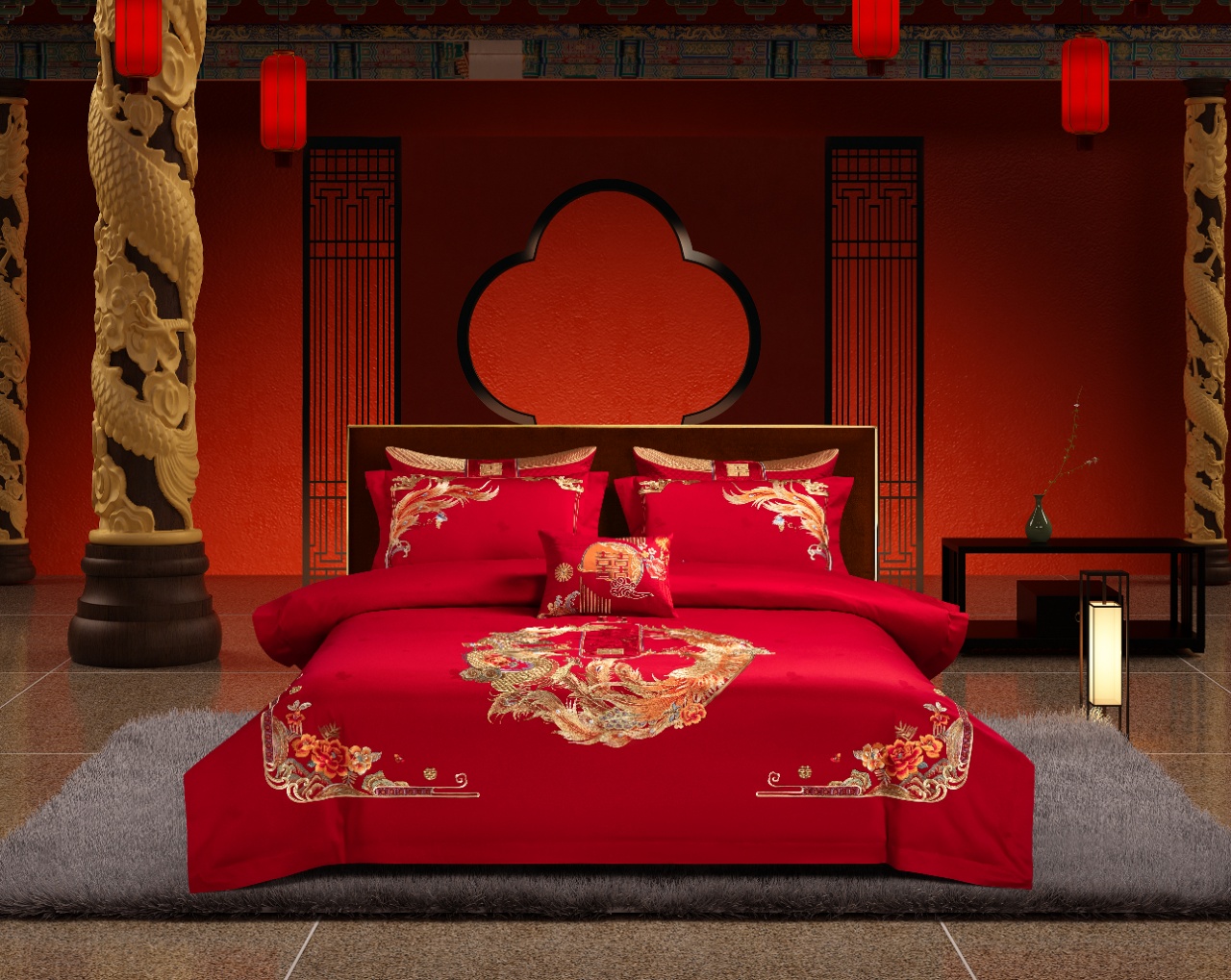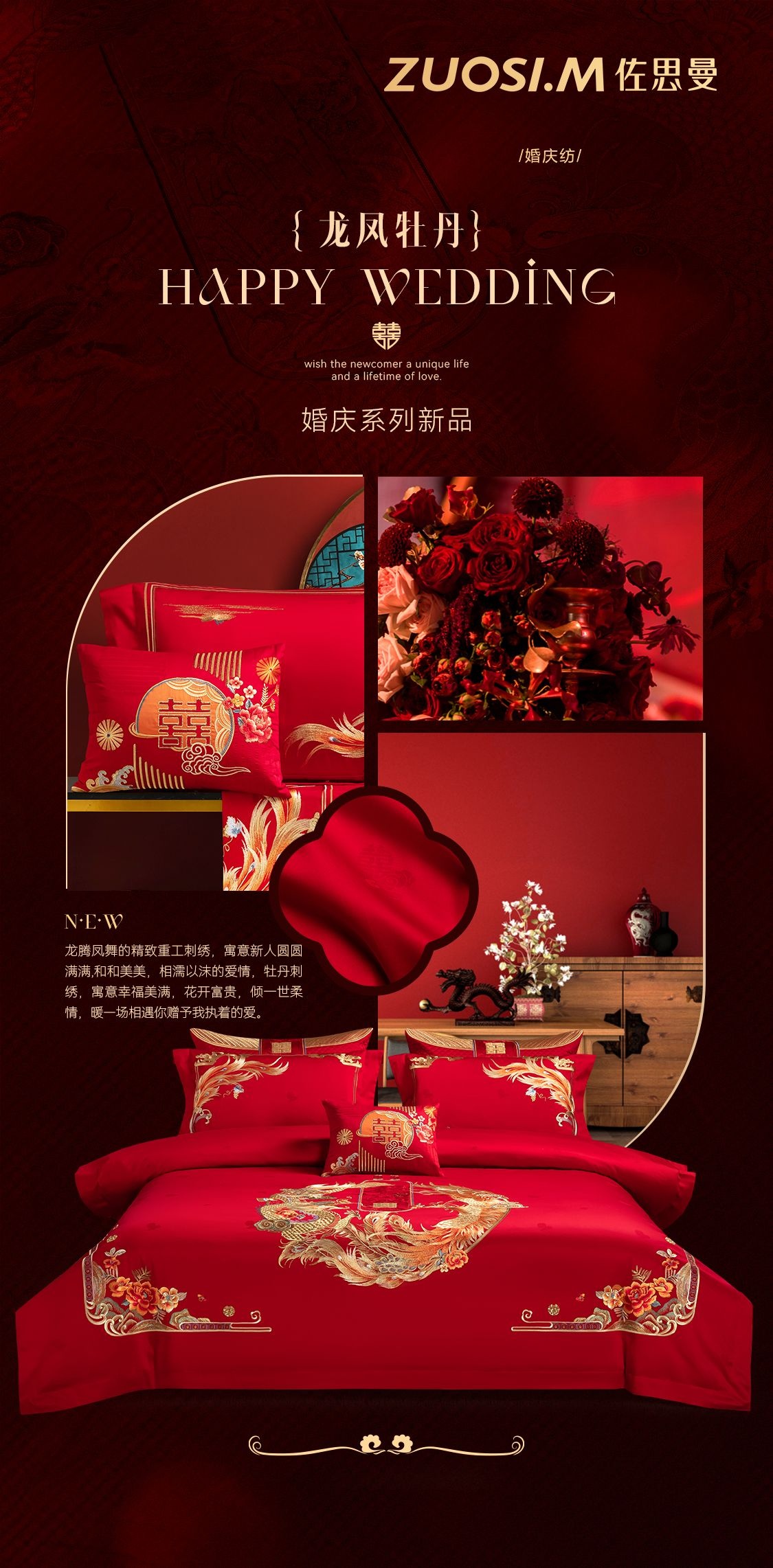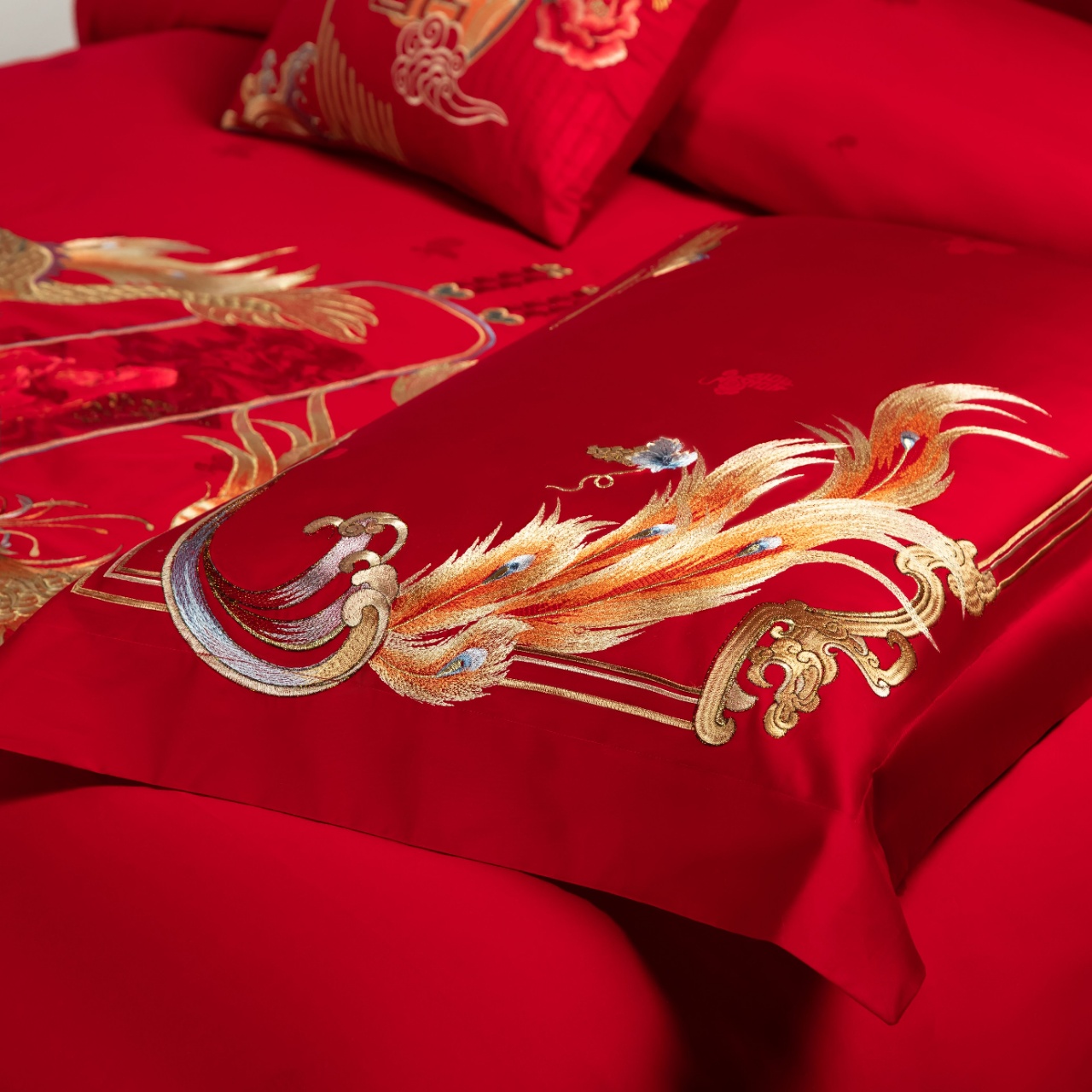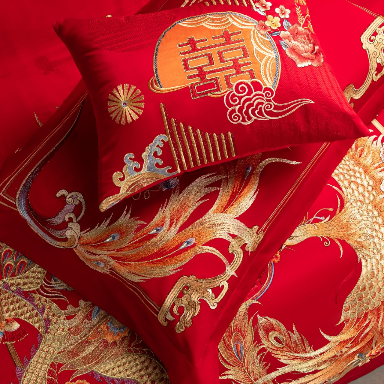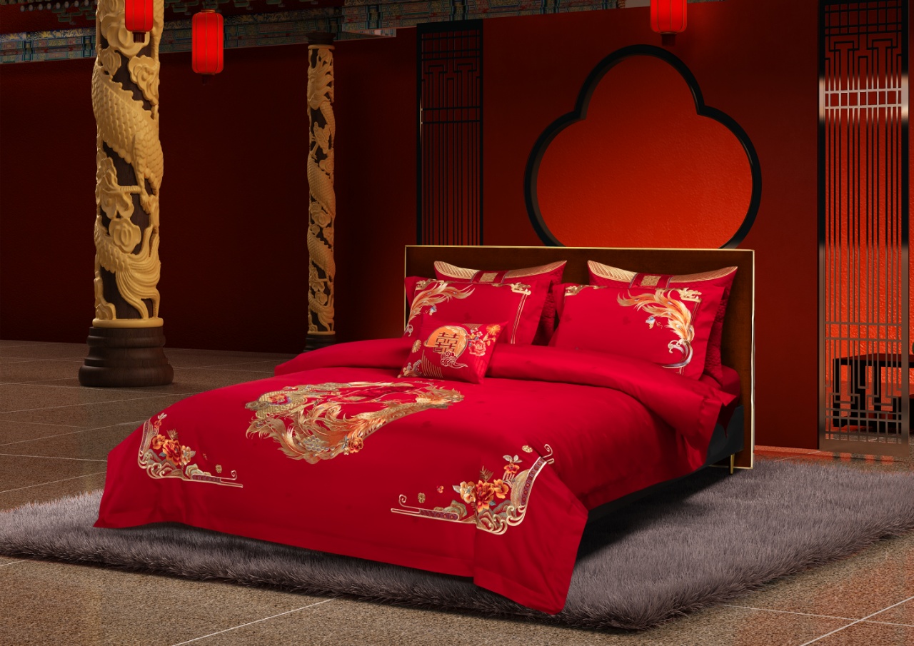 利路米家纺龙凤婚庆六件套结婚大红色高级感刺绣喜被--龙凤牡丹