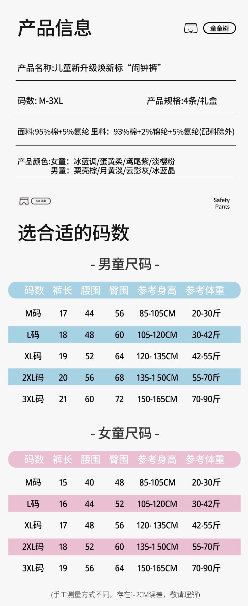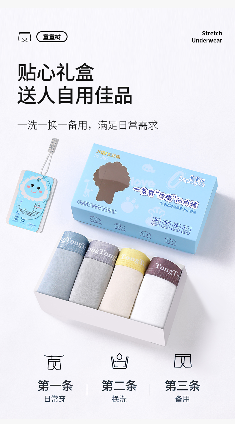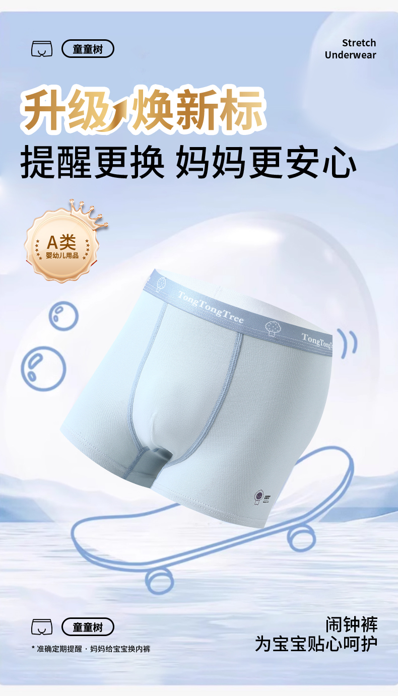 童童树新款焕新标儿童闹钟裤男女宝宝纯棉不夹PP高弹力四角小内裤T-5529/T-6629