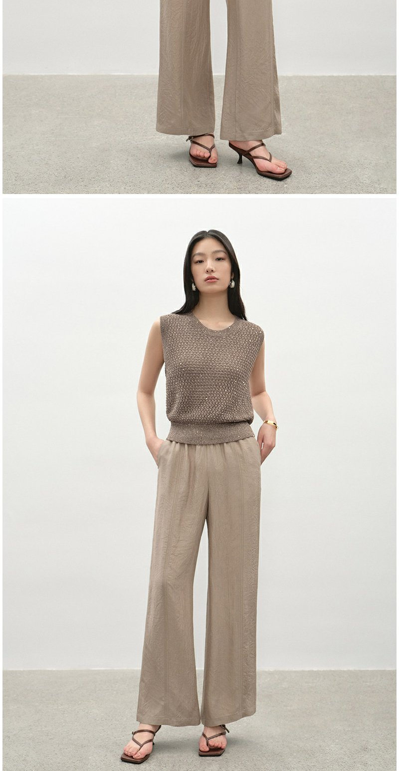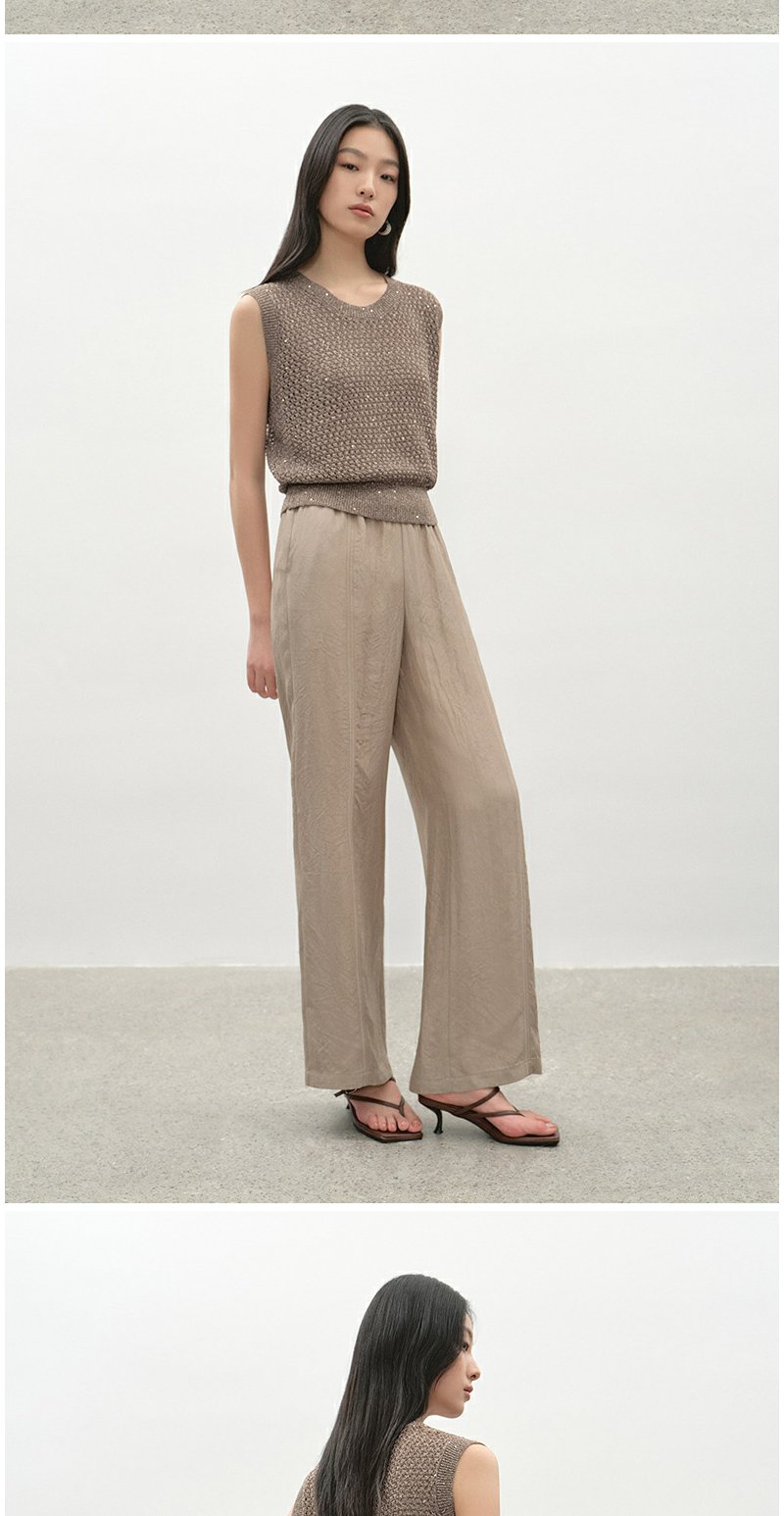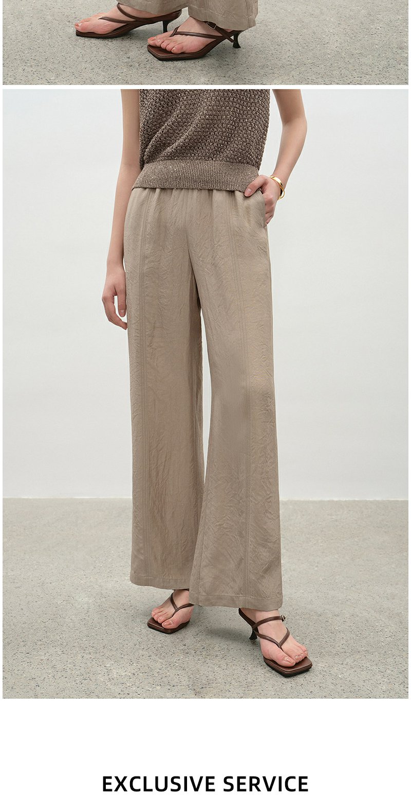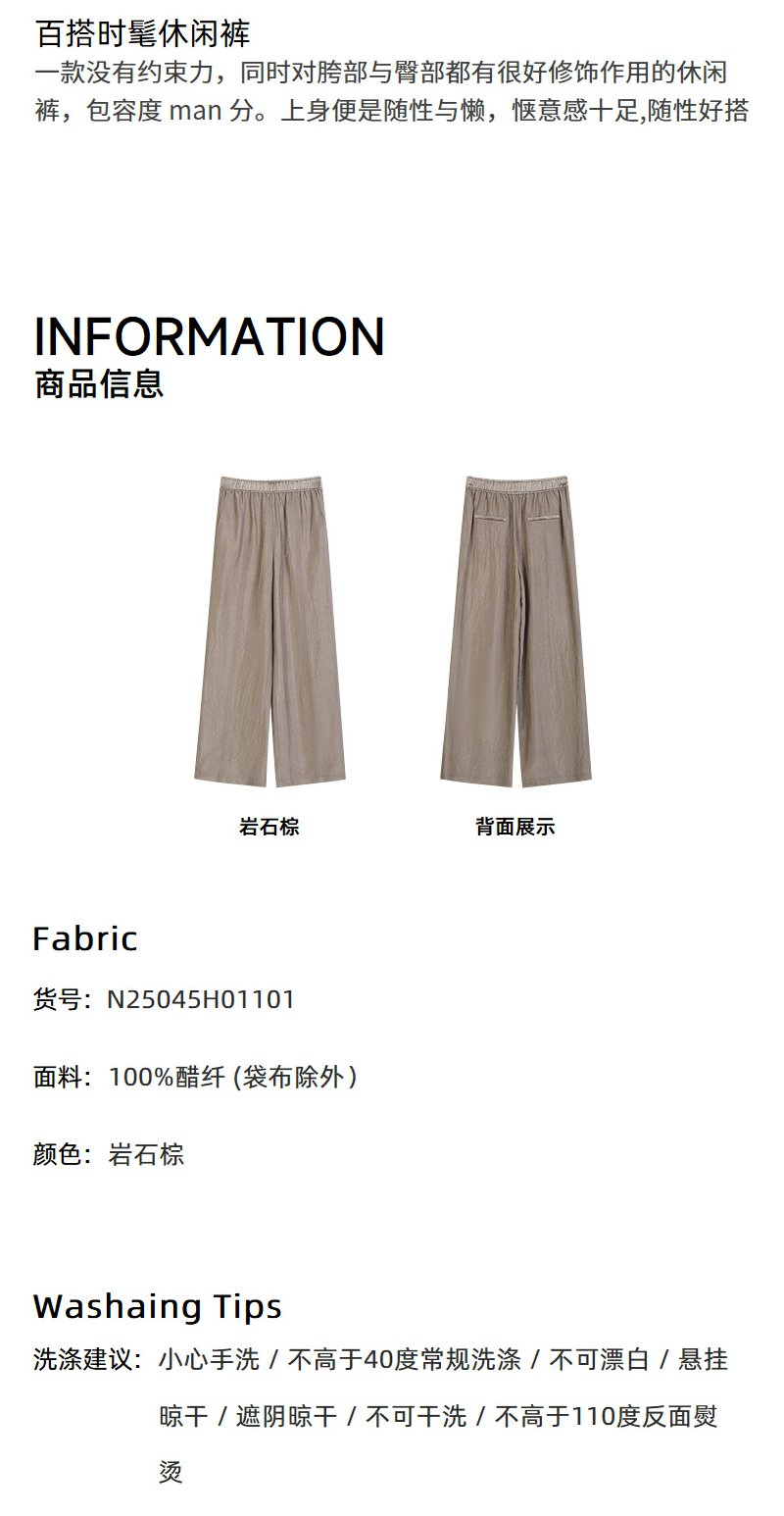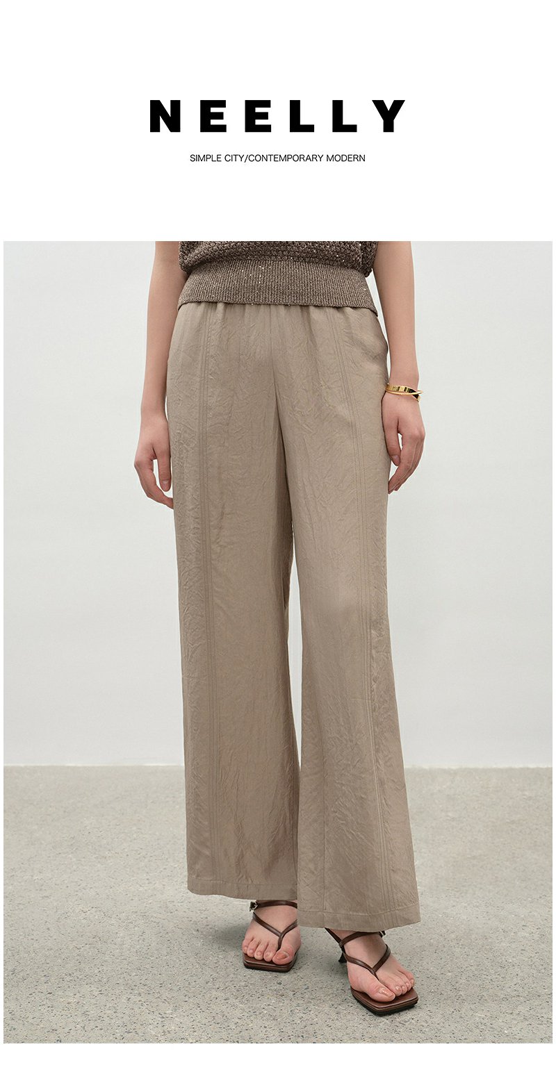 NEELLY纳俪商场同款夏季新款时尚百搭休闲阔腿裤女浅色简约长裤N25045H01101