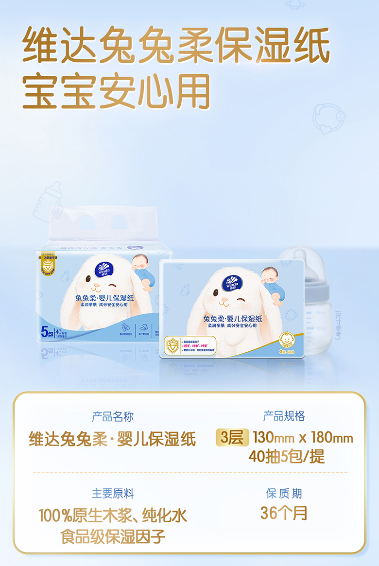 【官方包邮】维达奢柔乳霜抽纸3层S码40抽5包