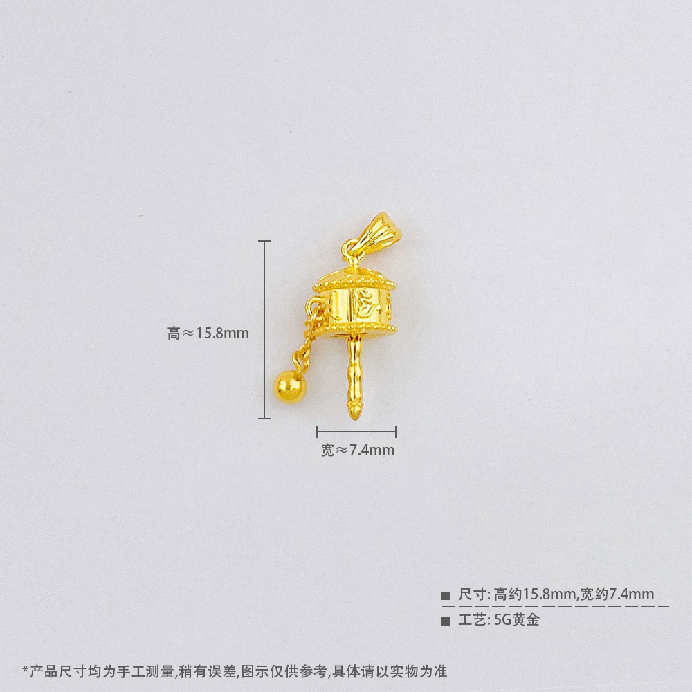 【限时7.5折】【定价黄金】足金999 5G黄金空心六字真言藏式转经筒吊坠(AG5GDZ00238)(预售产品下单后不退款不退货不换货不补差价)