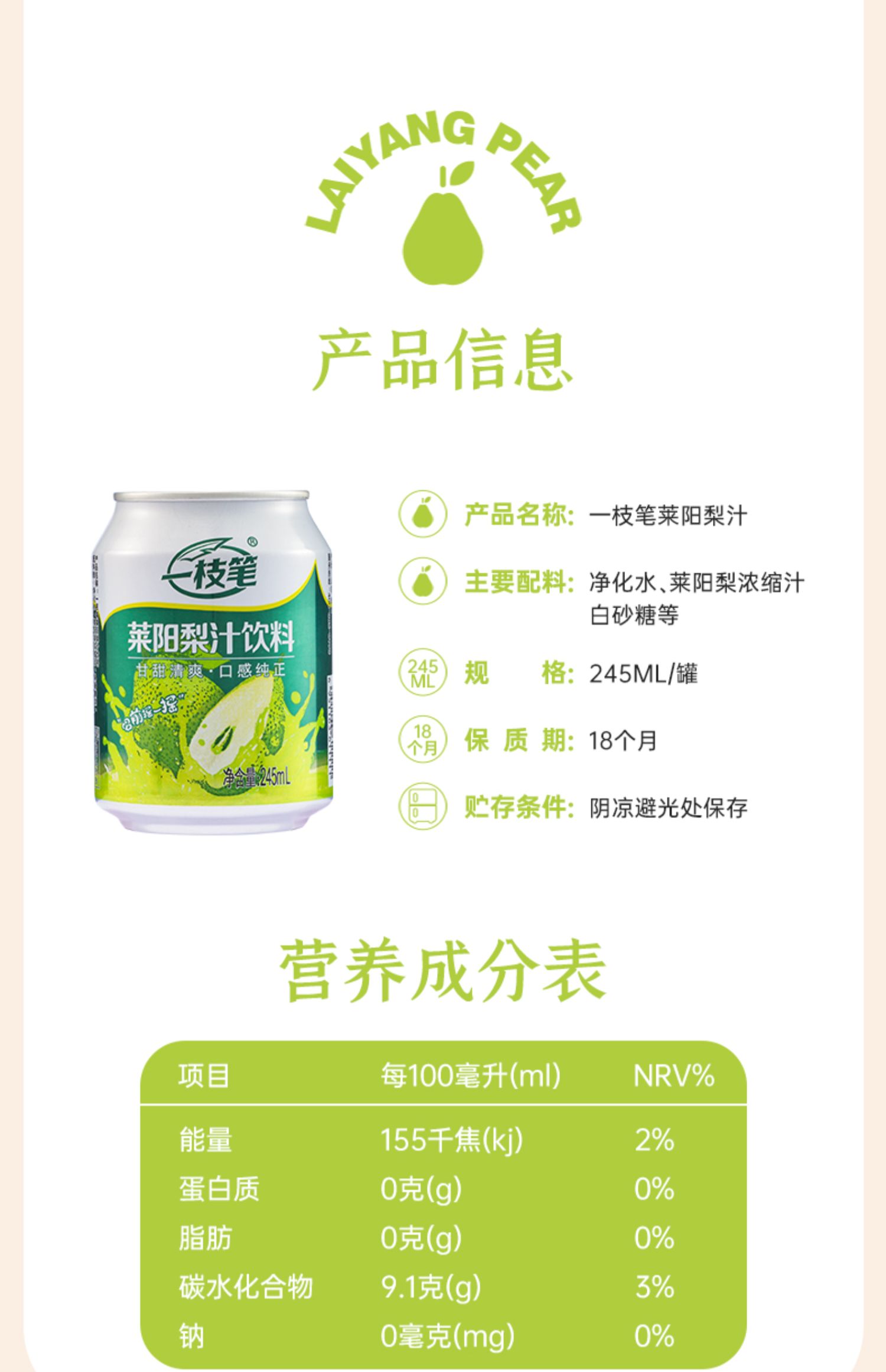 自营(一枝笔)-莱阳梨汁饮料245ml*8罐装梨味果汁整箱浓缩饮品【礼盒装】