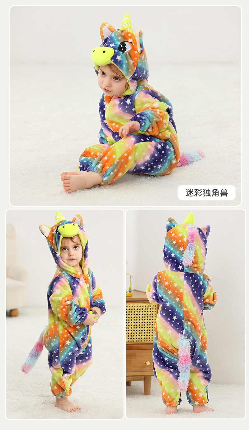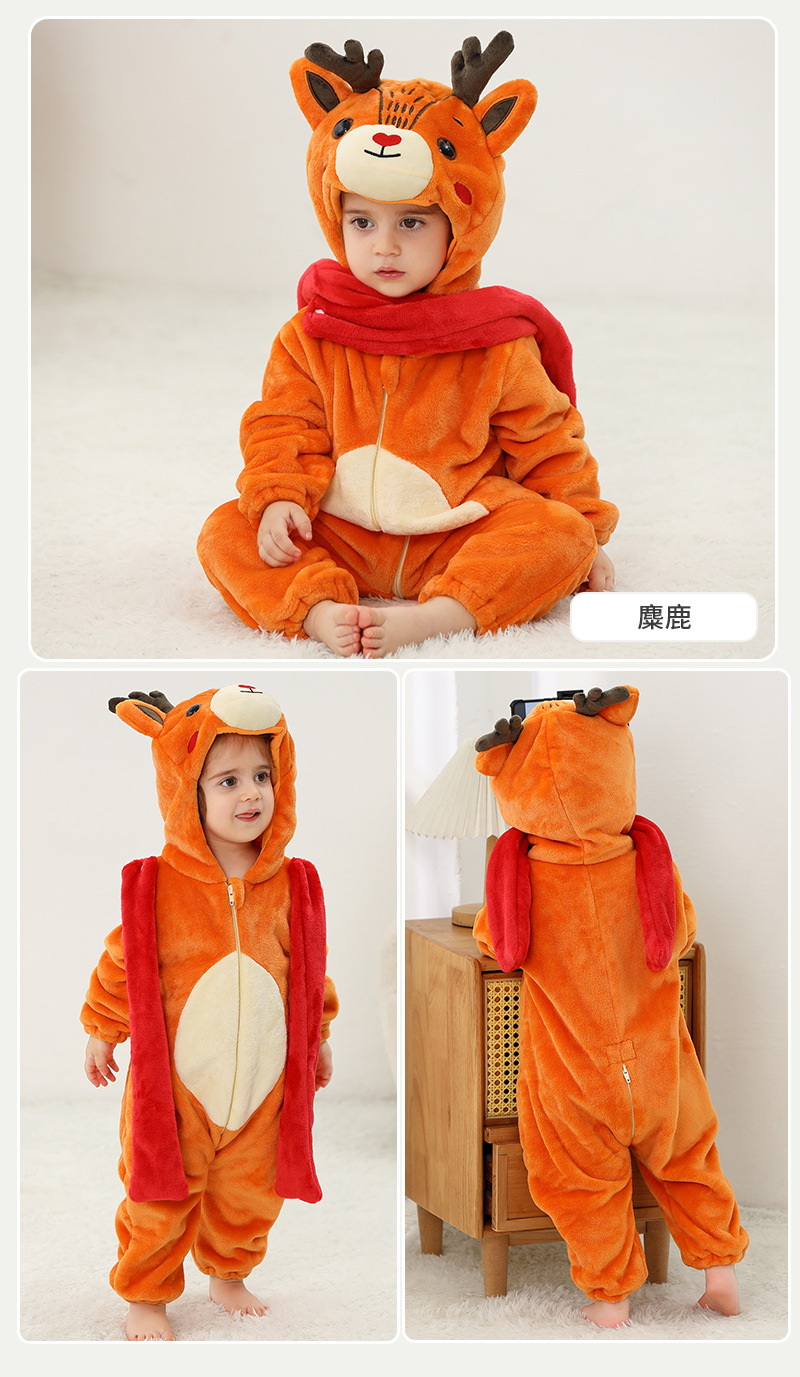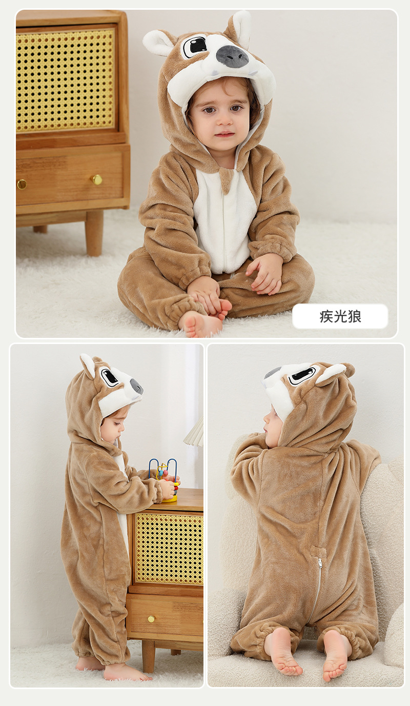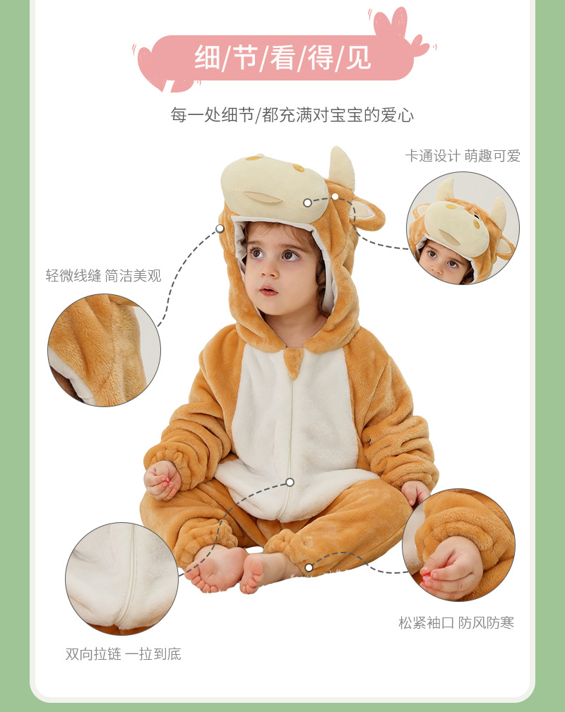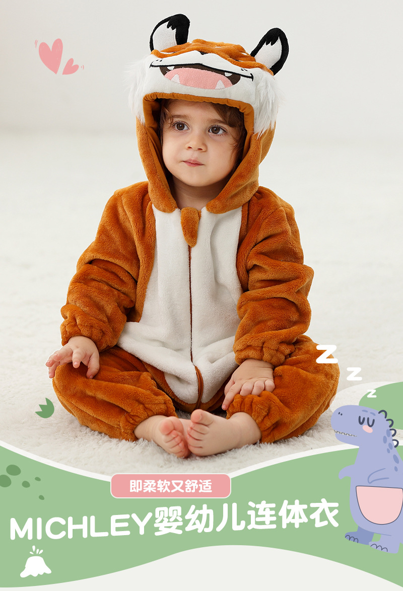 MICHLEY新款秋冬法兰绒爬服宝宝睡衣跨境儿童A类法兰绒动物连体衣