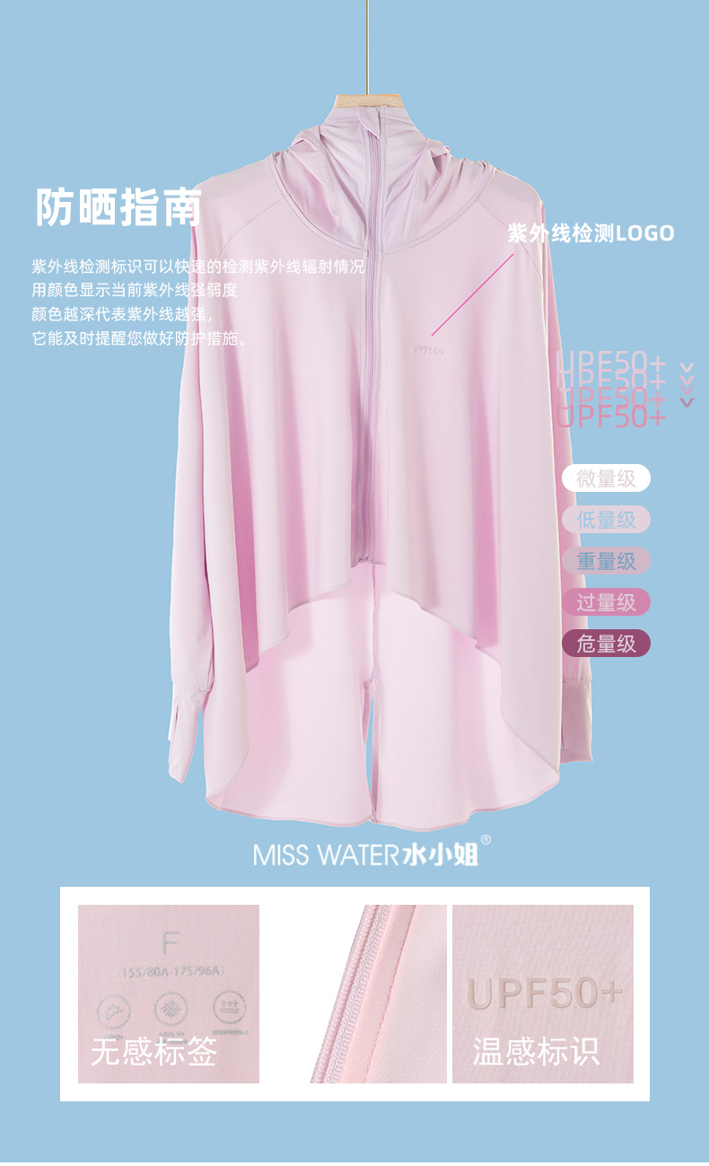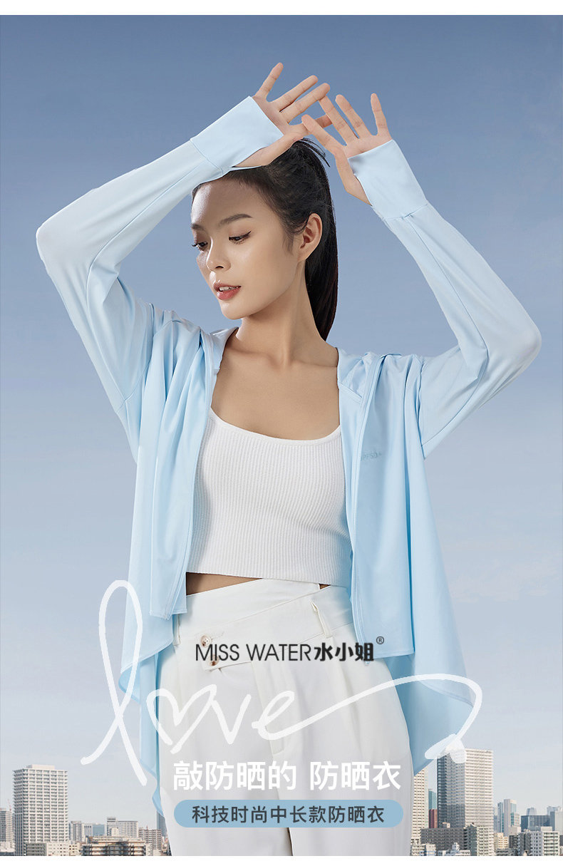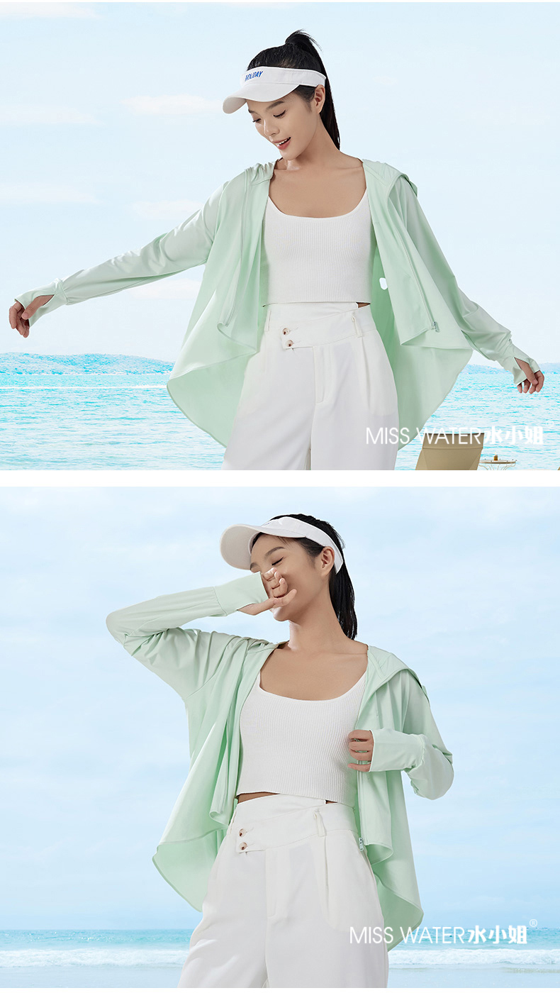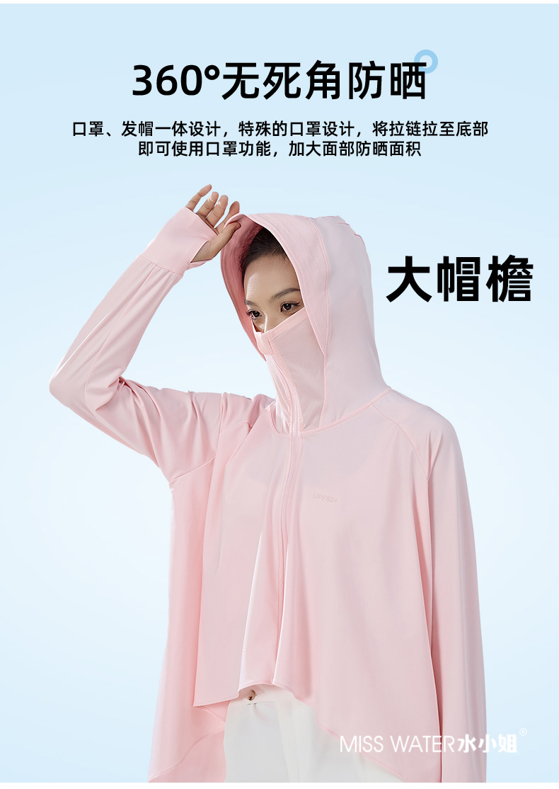 【两件立减20】【一件=遮阳帽+口罩+冰袖+防晒衣】MissWater鱼尾防晒衣 透气冰爽设计 晒不黑、晒不伤!UPF50+ 夏季新品,冰丝爽感,防紫外线,长款带帽子防晒服