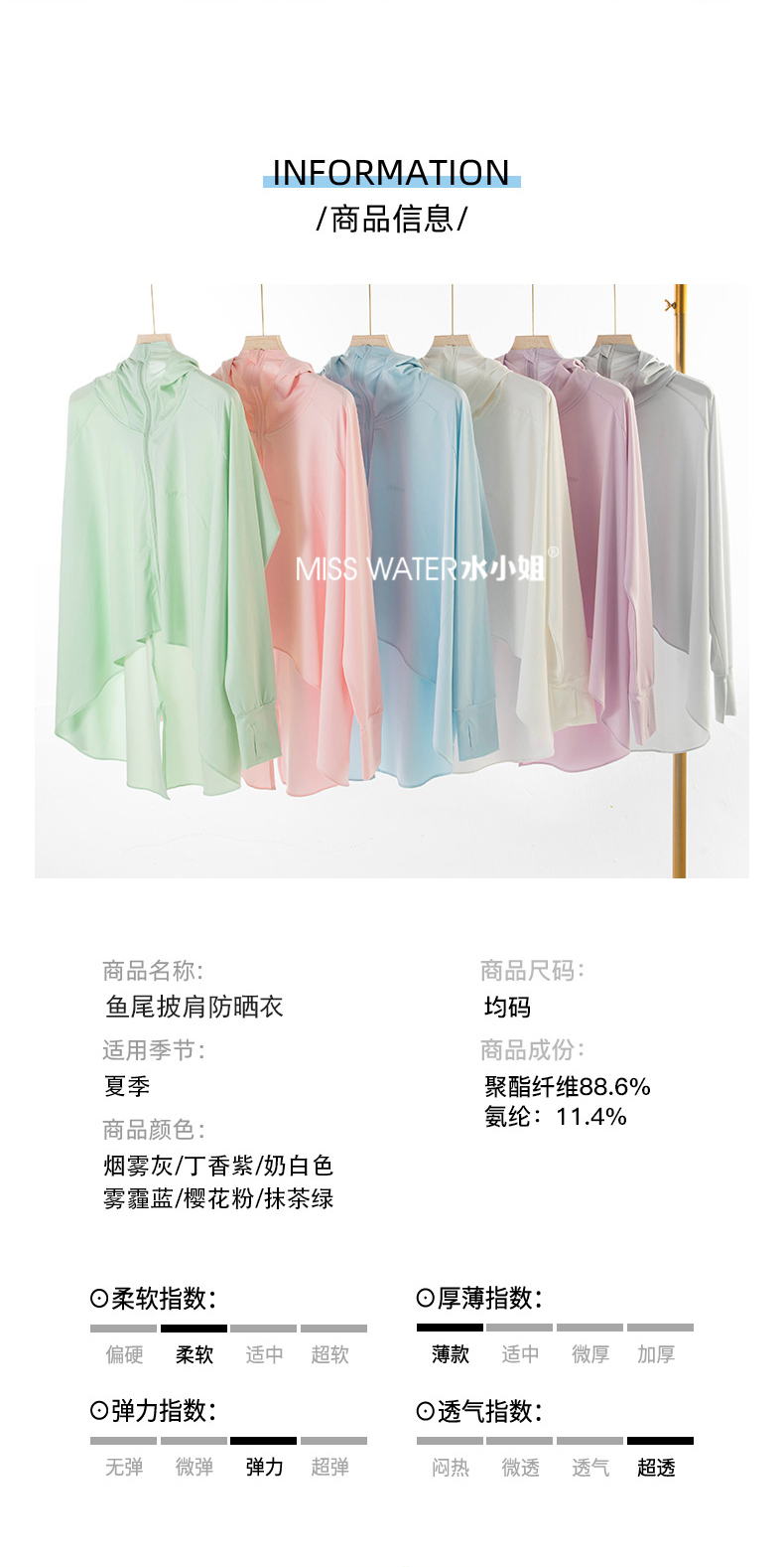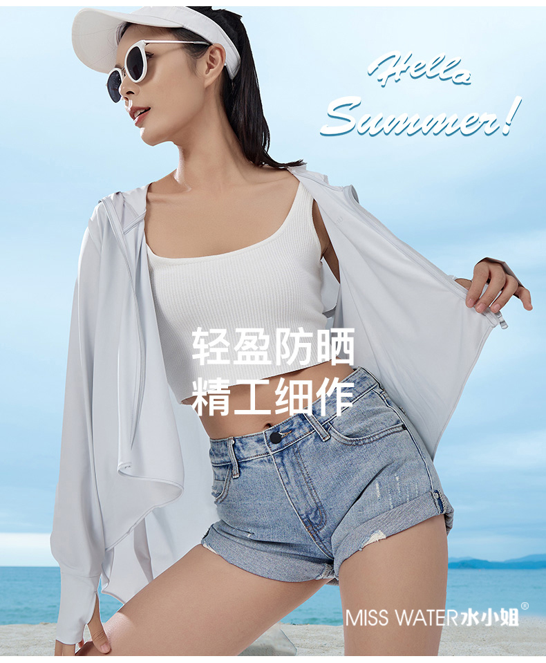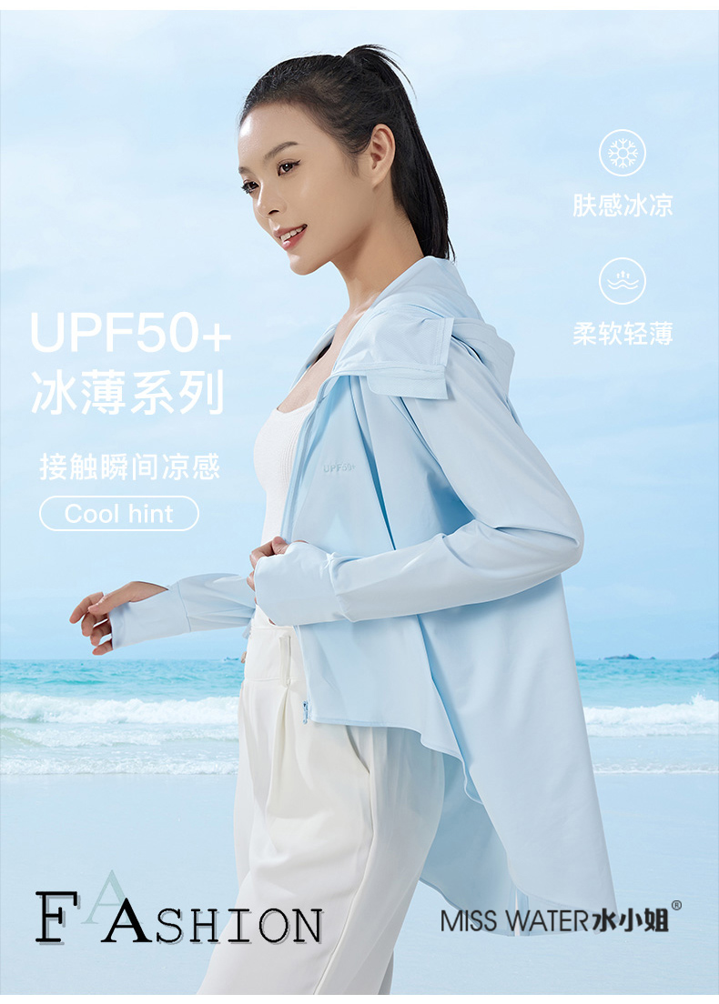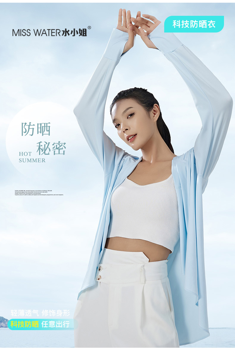 【两件立减20】【一件=遮阳帽+口罩+冰袖+防晒衣】MissWater鱼尾防晒衣 透气冰爽设计 晒不黑、晒不伤!UPF50+ 夏季新品,冰丝爽感,防紫外线,长款带帽子防晒服