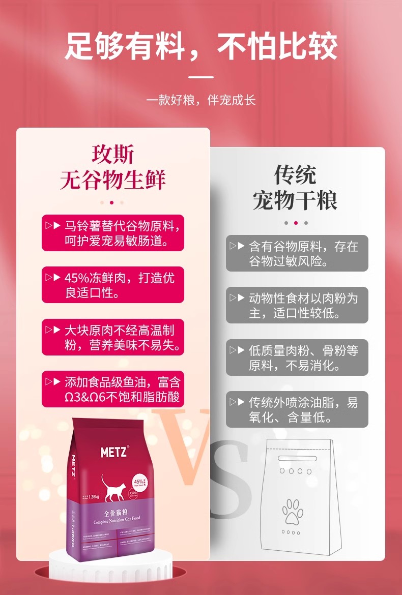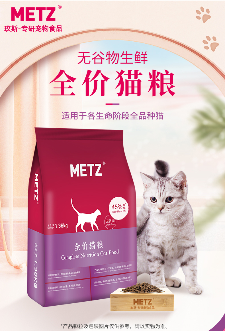 METZ/玫斯无谷物生鲜全价猫粮成猫幼猫通用增肥英短美短主粮6.8kg/1.36KG