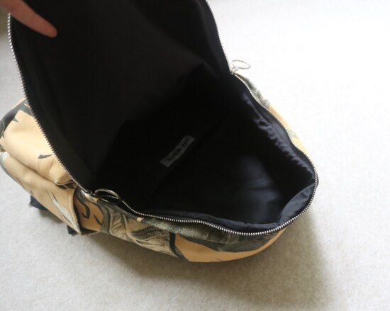 衬里 黑色的涤纶料 主袋 内无隔断 贴袋的隔层内有填充 可进13寸笔记本
