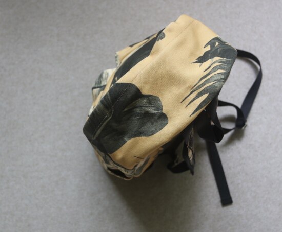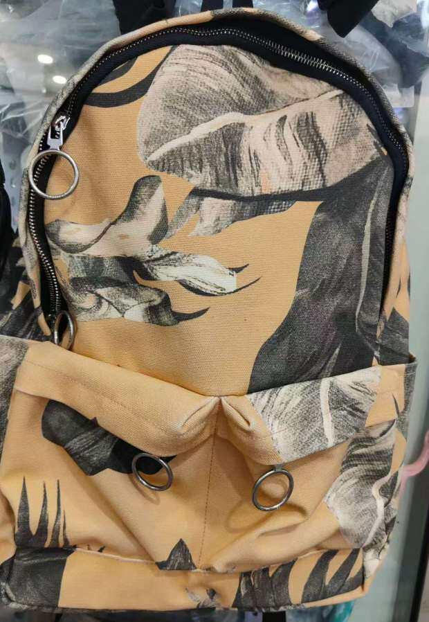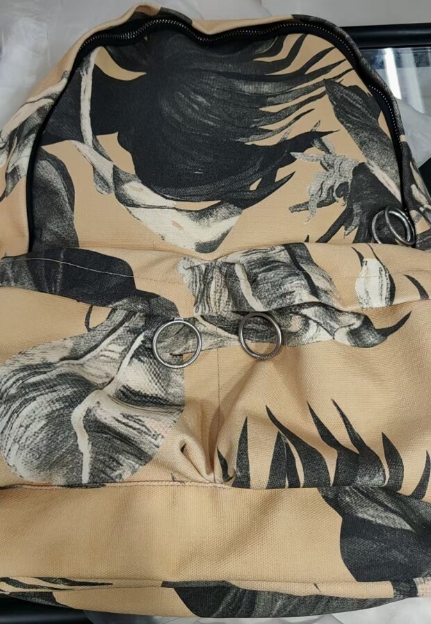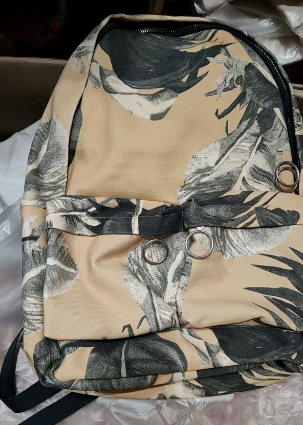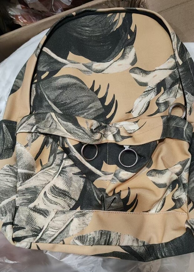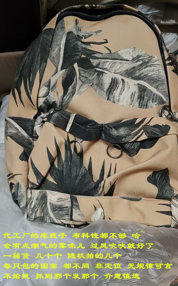 包身布料 是在国外印染好 成卷进口过来 随制随剪裁 每只包的图案 都不同