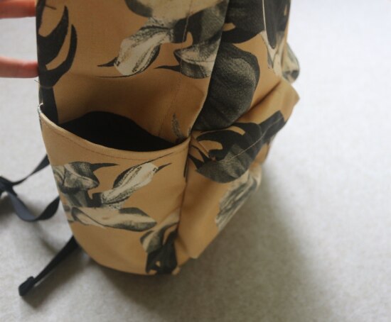 包顶可以手提 两侧可以放水杯 下面是两个独立的前置口袋 单开拉链头