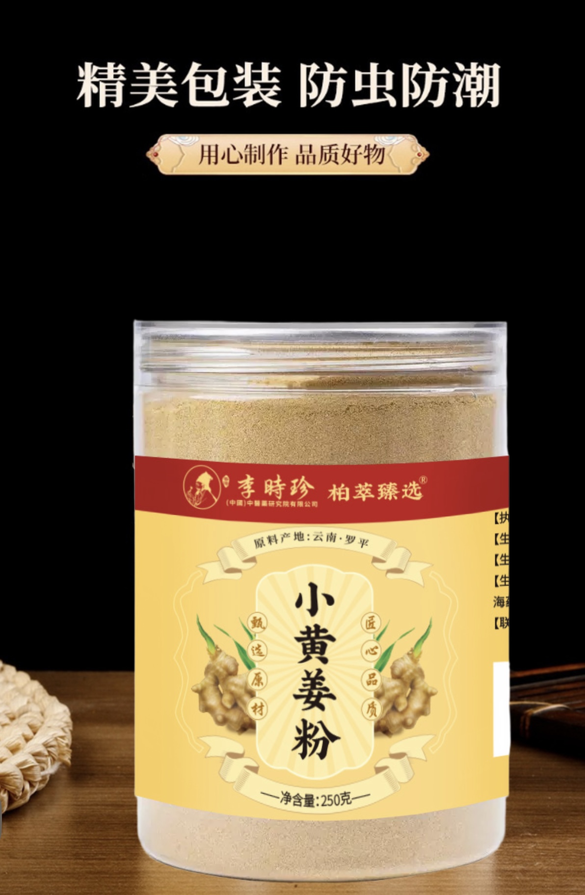 【买2送1,买3送2】李时珍·小姜黄粉 云南罗平有机小黄姜 冲泡即饮 汤色亮黄 入口辛辣 姜香醇厚炽烈 营养丰富 适合女性、老人、上班族 250g/罐